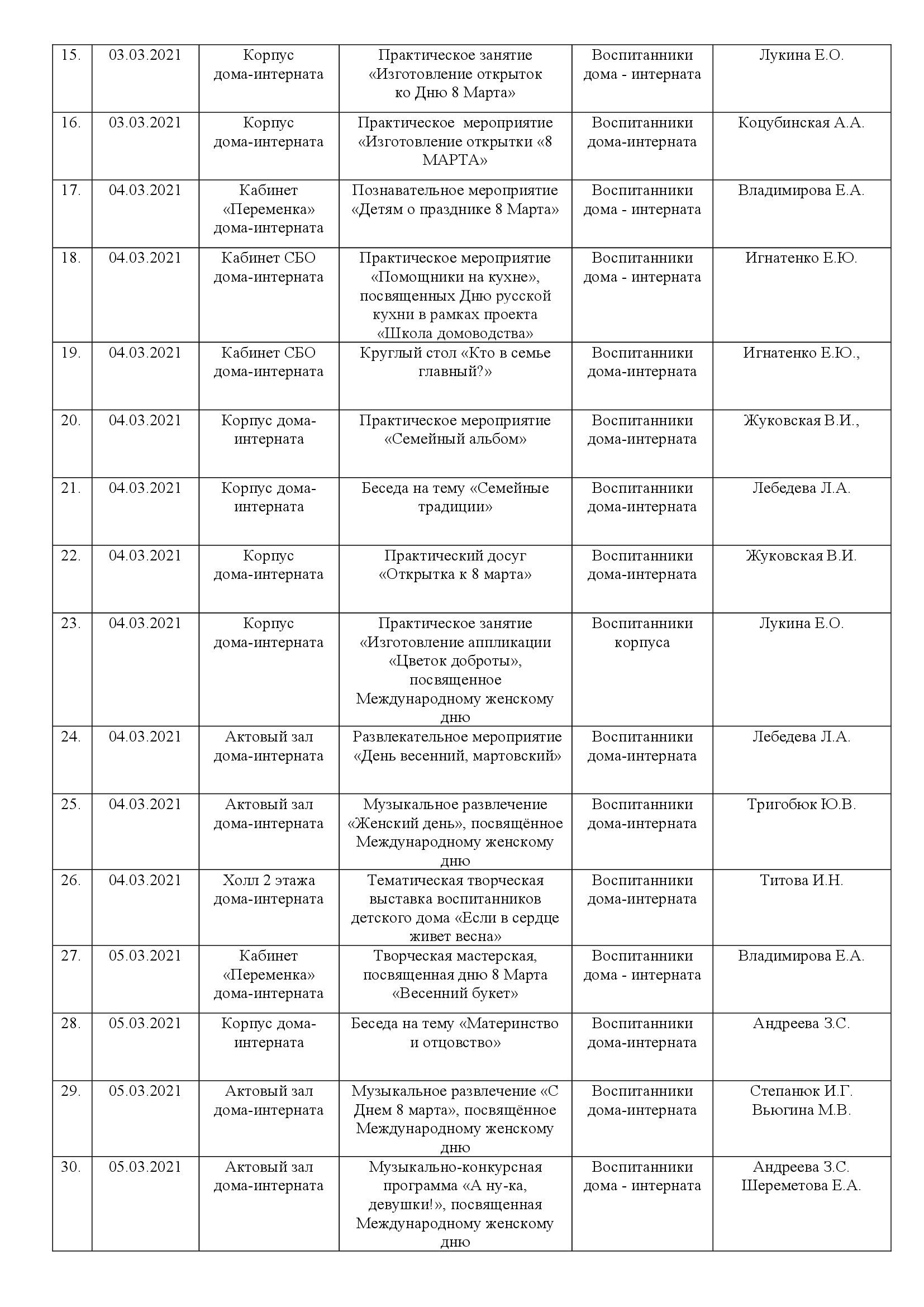 План мероприятий с 01.03.2021 по 07.03.2021