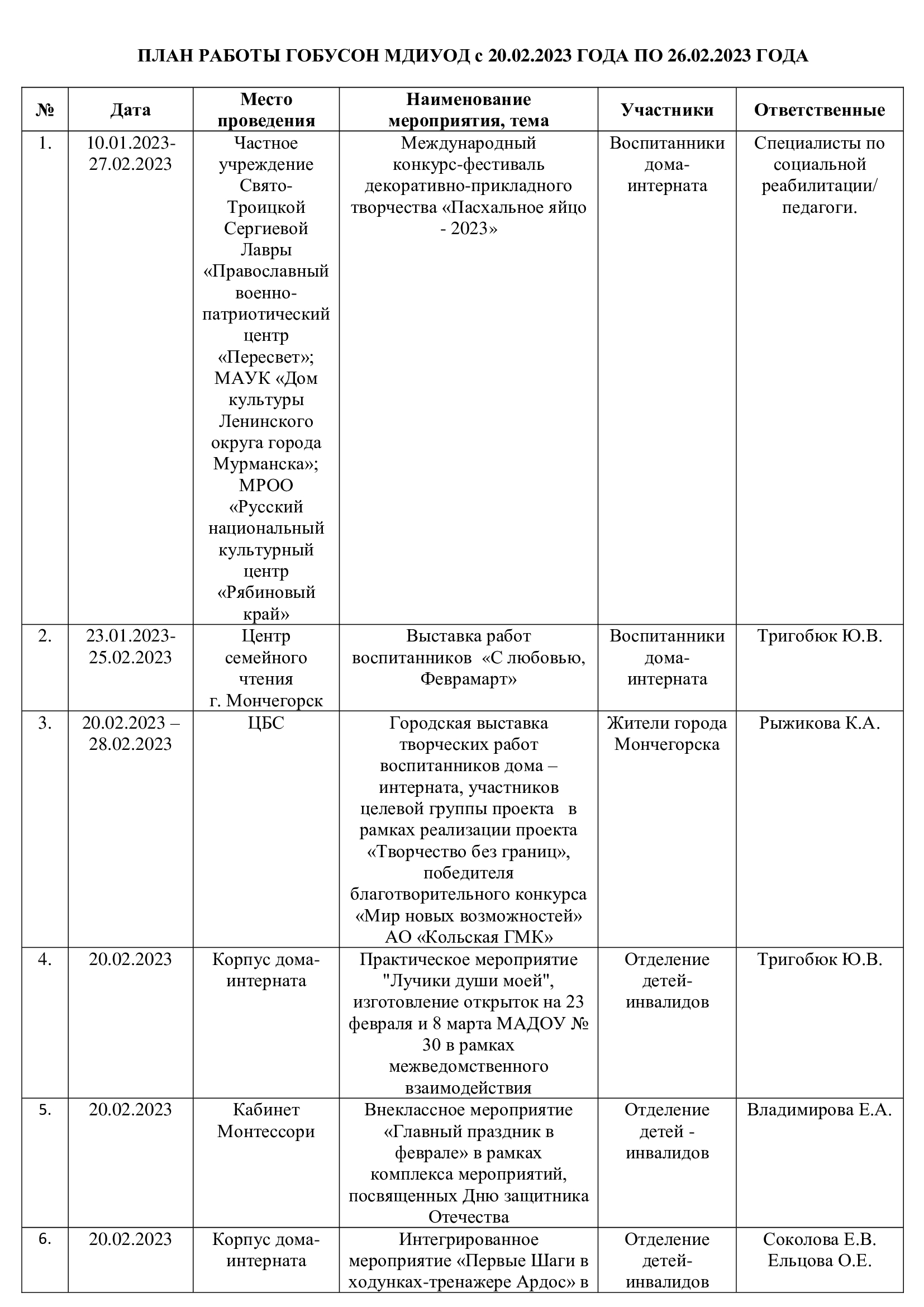 План мероприятий с 20.02.2023 по 26.02.2023 года
