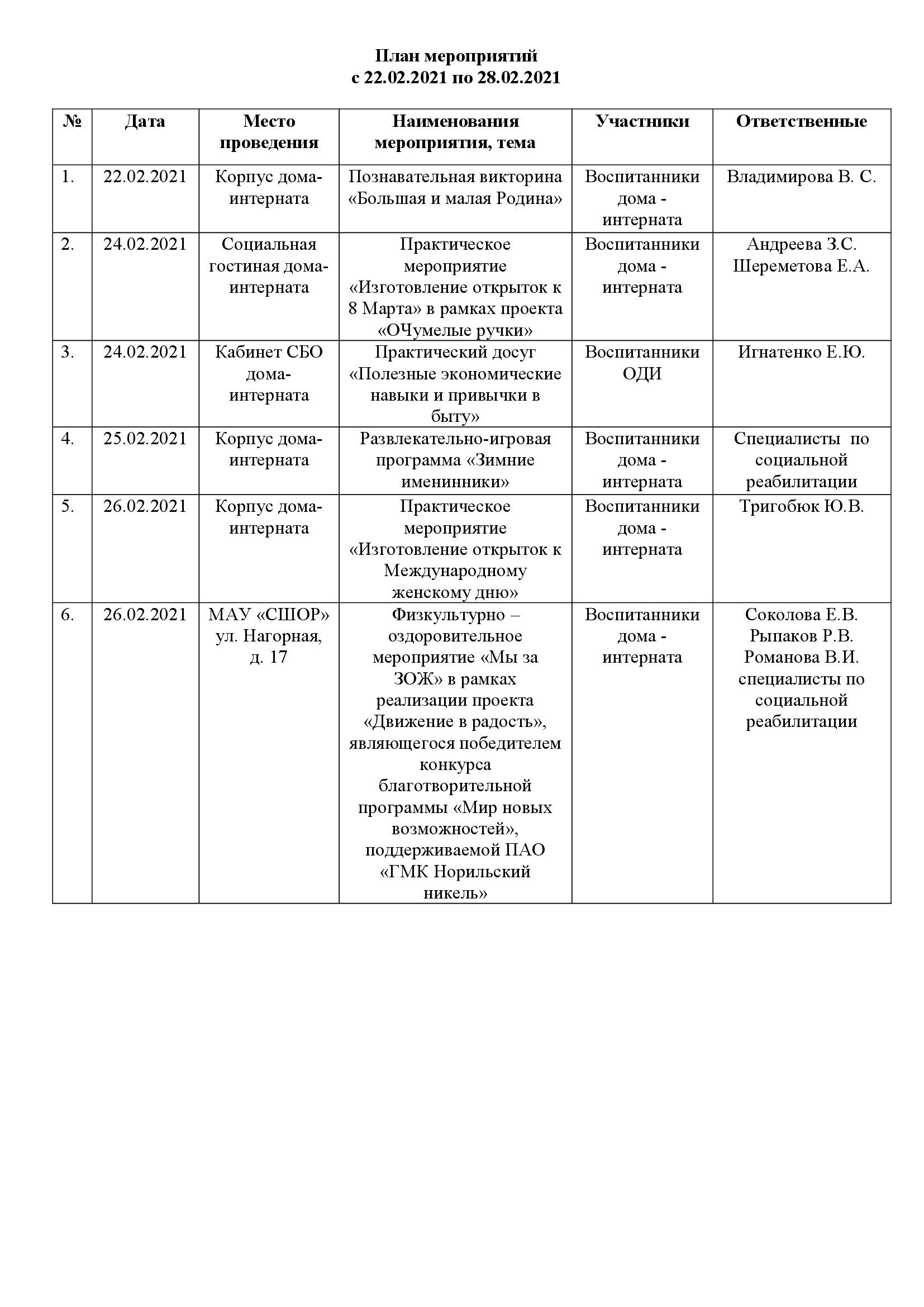 План мероприятий с 22.02.2021 по 28.02.2021