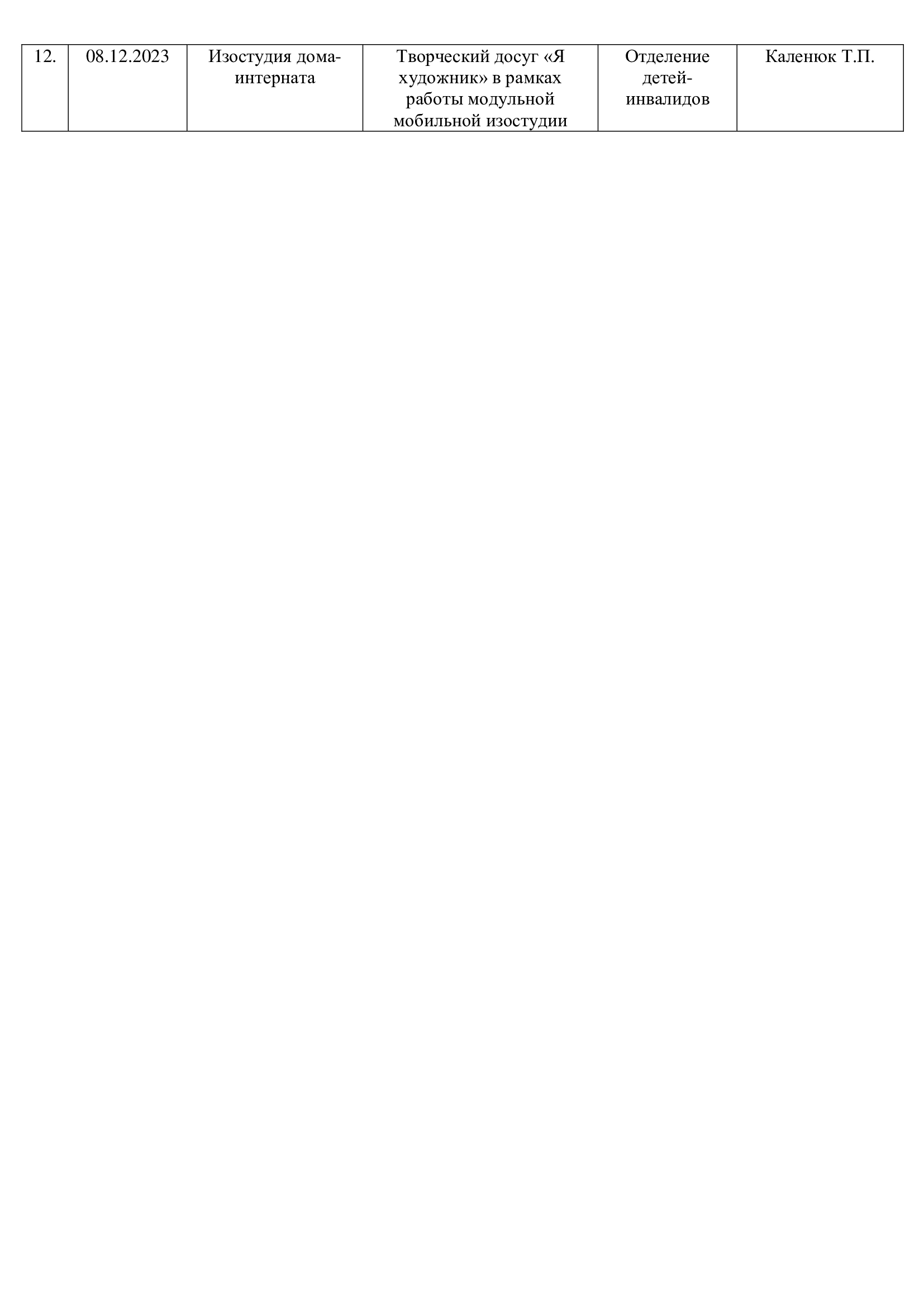 План работы ГОБУСОН МДИУОД с 04 декабря по 10 декабря 2023 года