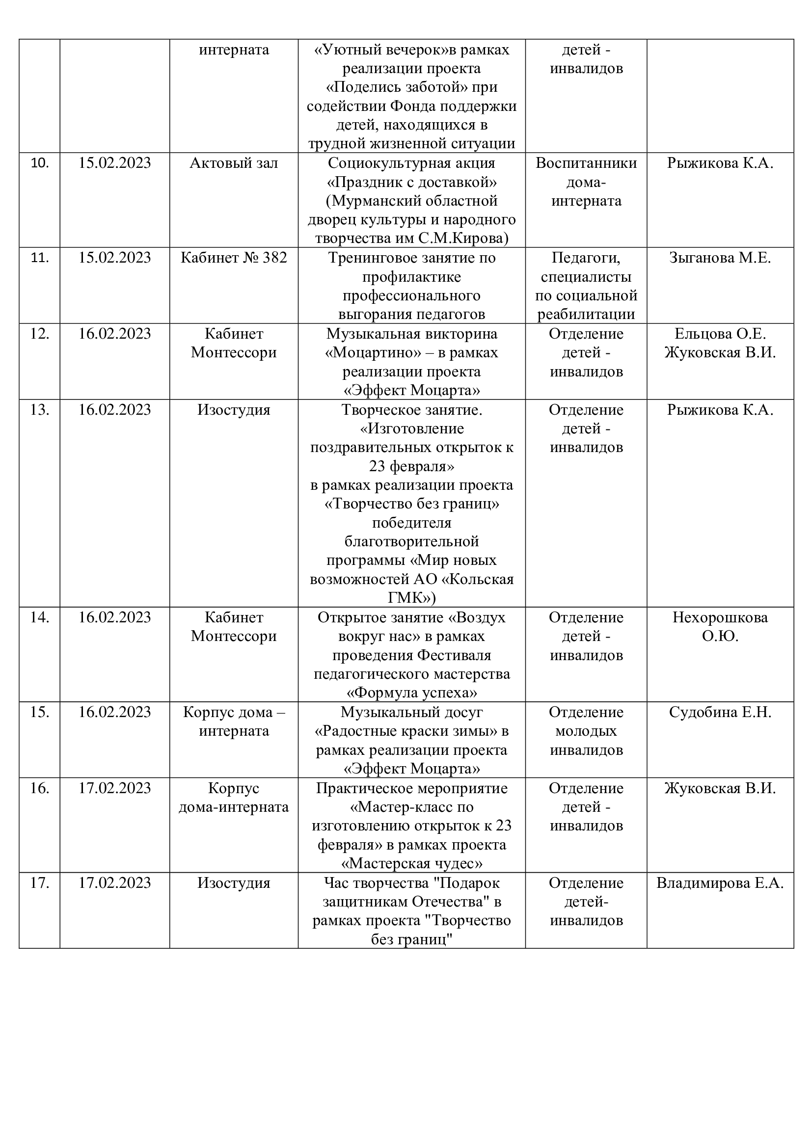 План работы ГОБУСОН МДИУОД с 13 февраля 2023 года по 19 февраля 2023 года