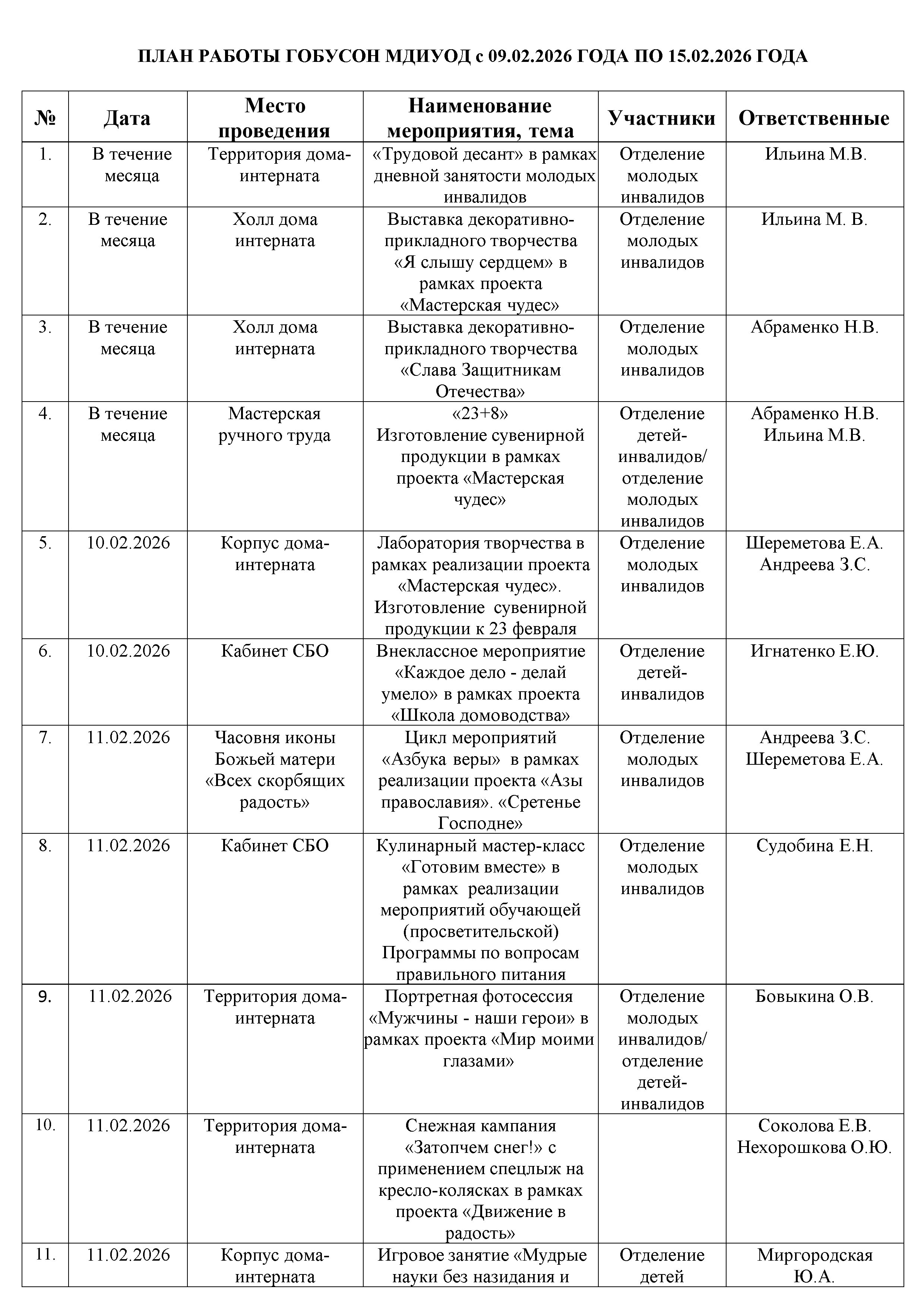 План работы Мончегорского дома-интерната с 09 февраля по 15 февраля 2026 года