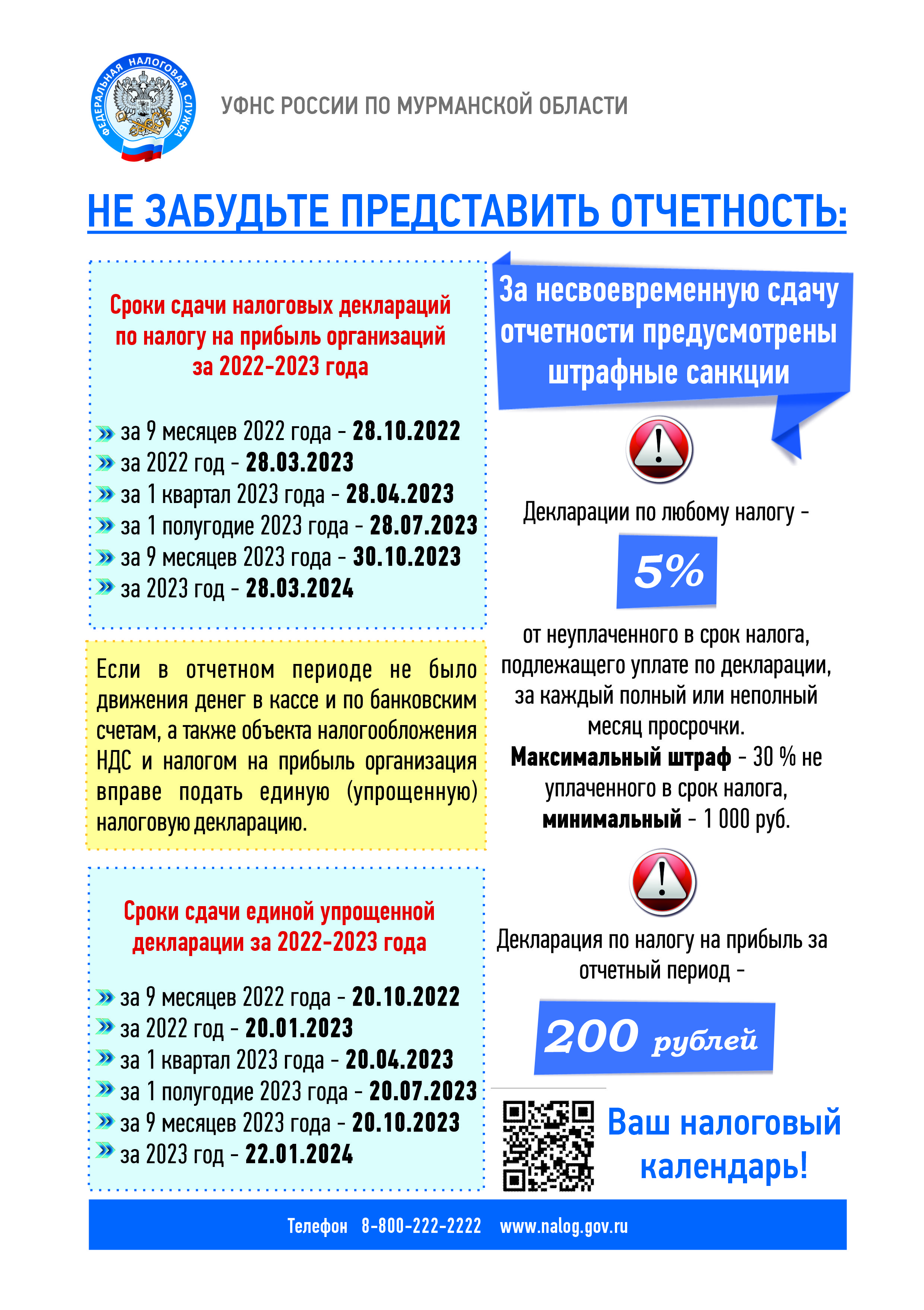 Сроки предоставления налоговых деклараций в 2022-2023 гг.