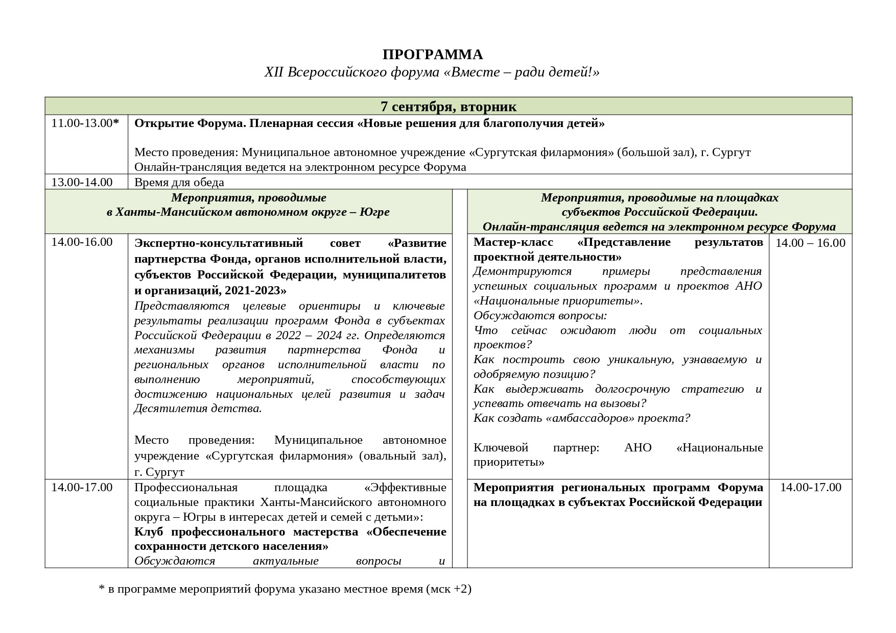 Программа XII Всероссийского форума «Вместе – ради детей!» (скачать)