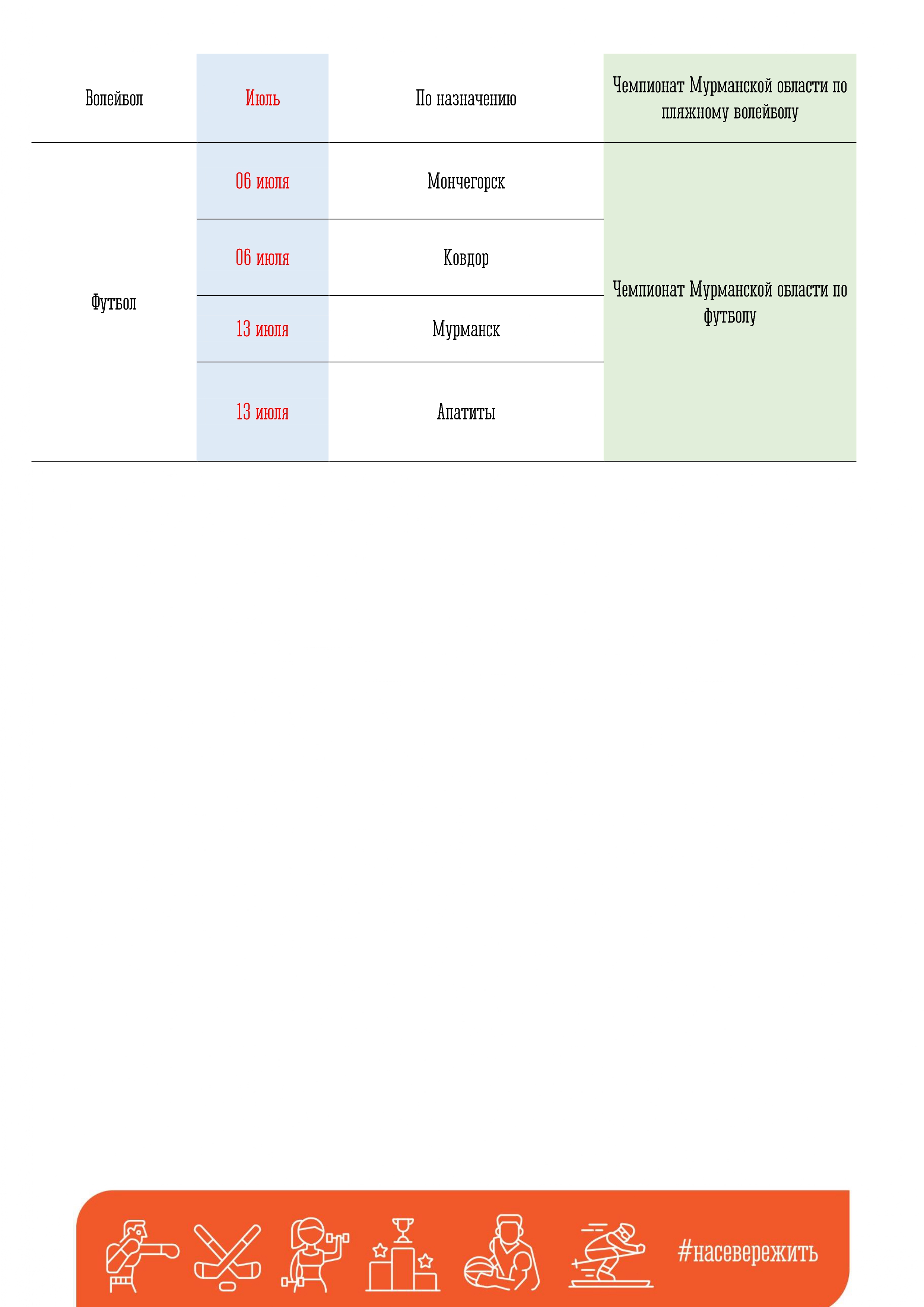 Афиша физкультурных и спортивных мероприятий Мурманской области на июль 2024