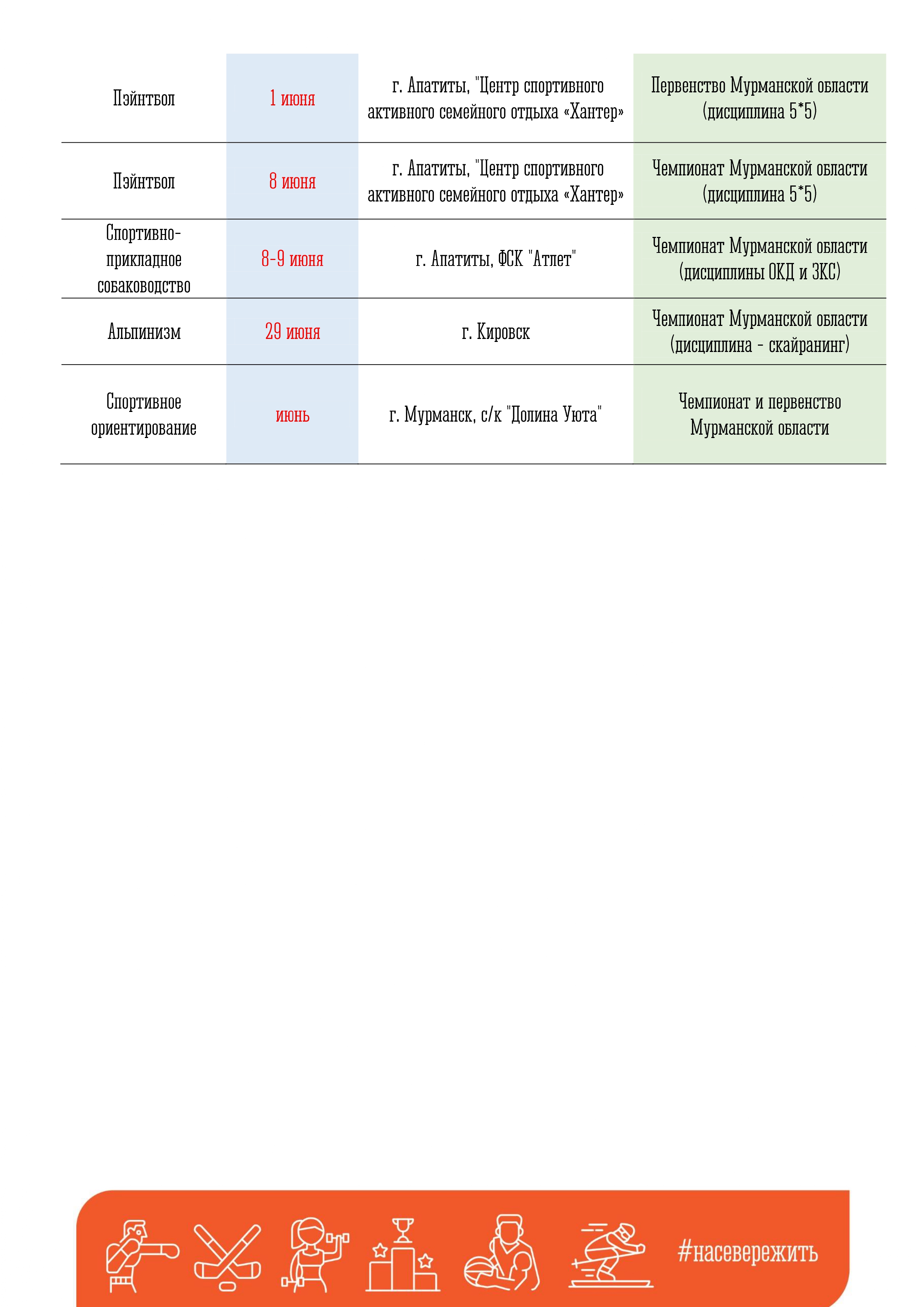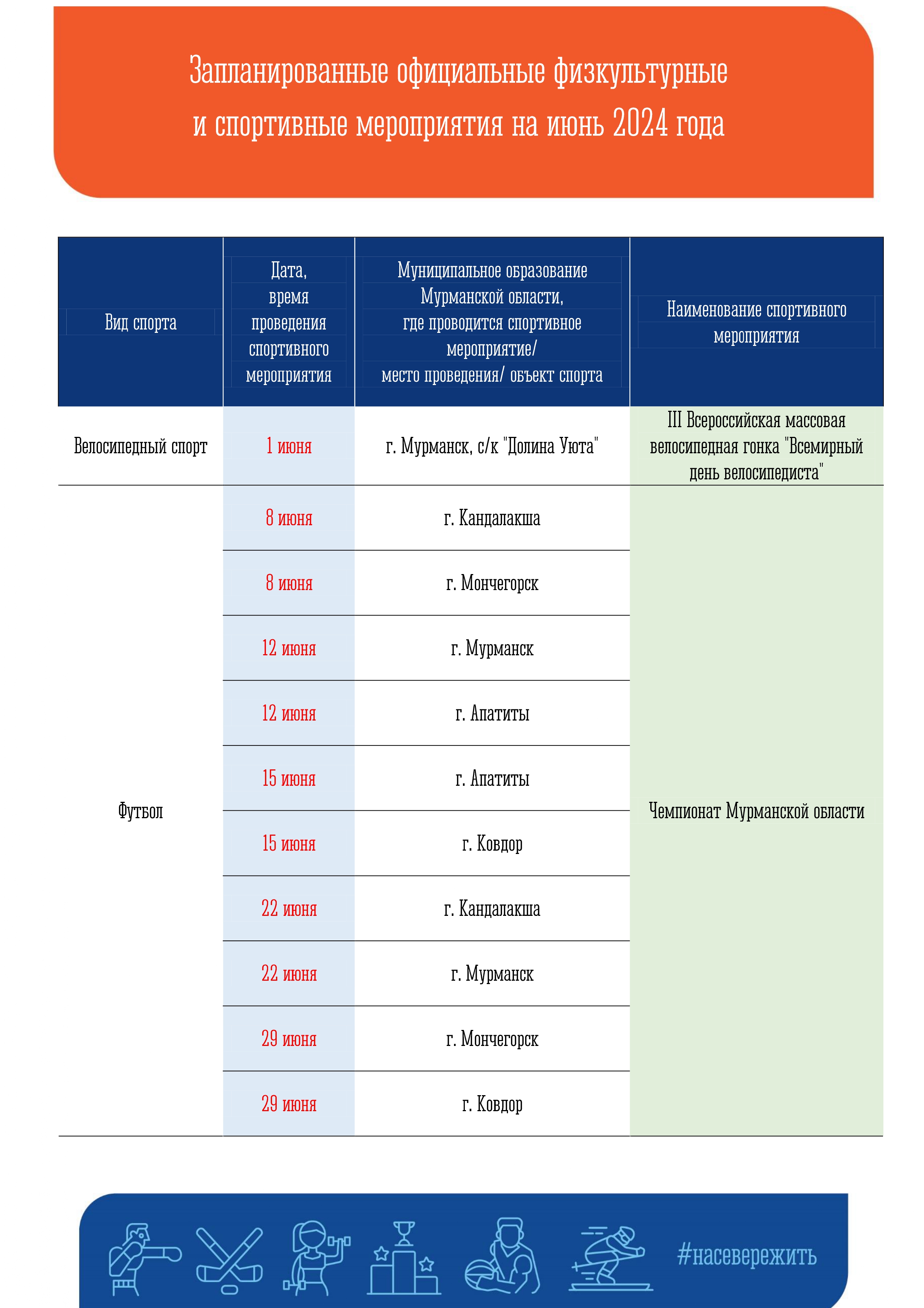 Афиша физкультурных и спортивных мероприятий Мурманской области на июнь 2024