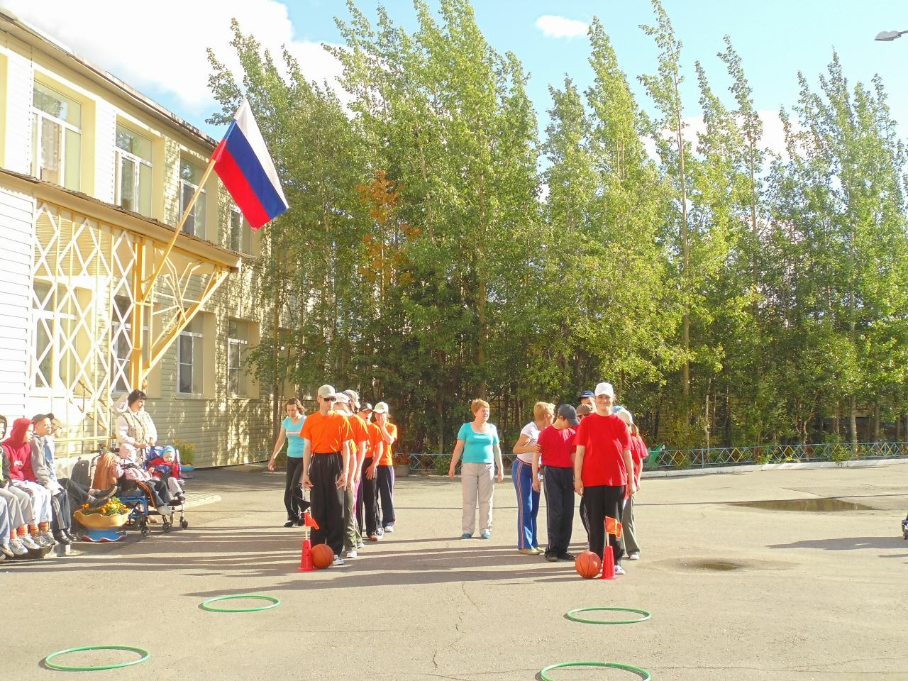 Затем две команды по 8 человек под музыку и в бодром настроении соревновались в ловкости, меткости, быстроте и сноровке. Болельщики их поддерживали: хлопали в ладоши и восторженно скандировали «давай быстрей!» В этот день, конечно же, победила дружба.