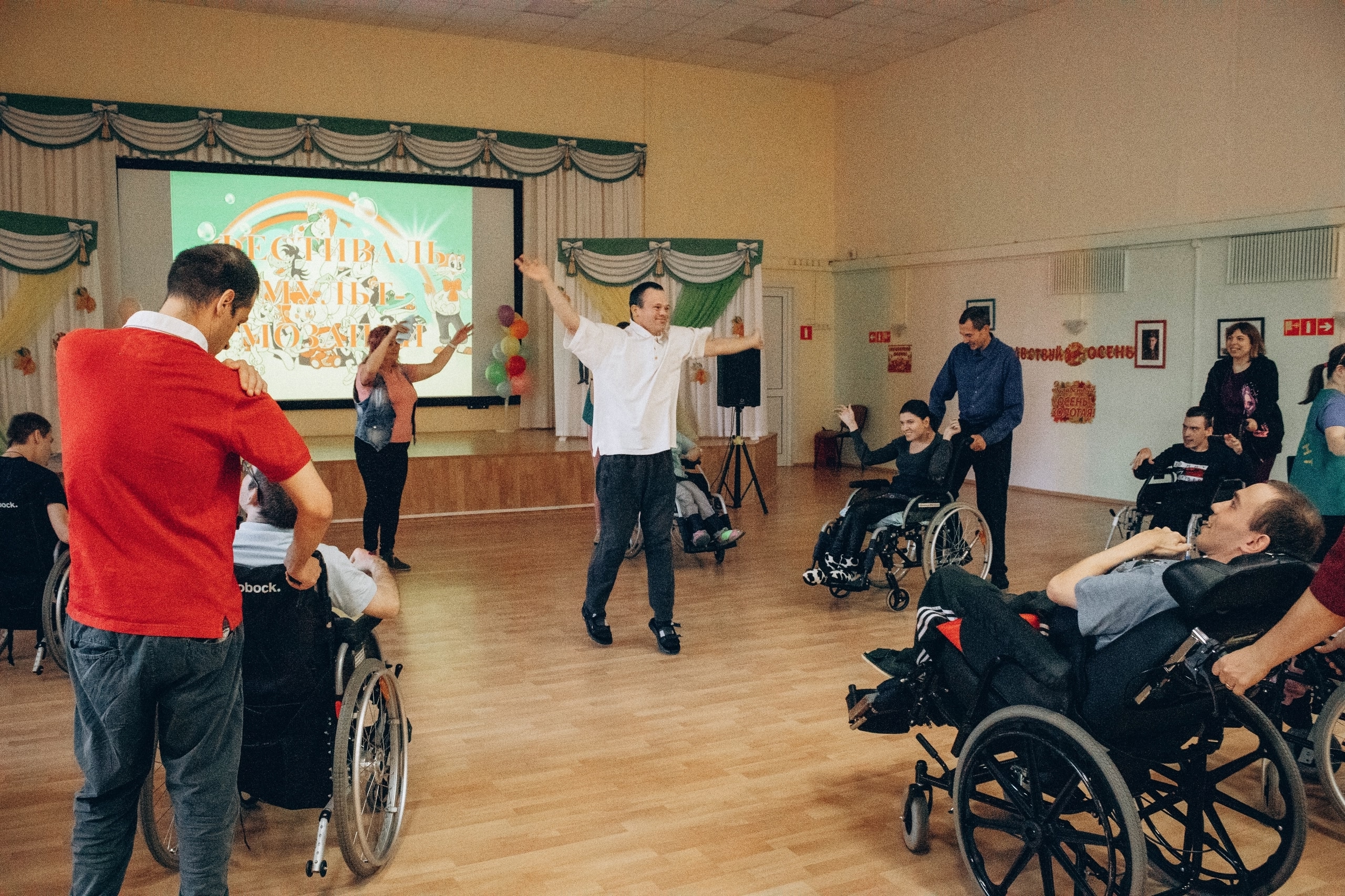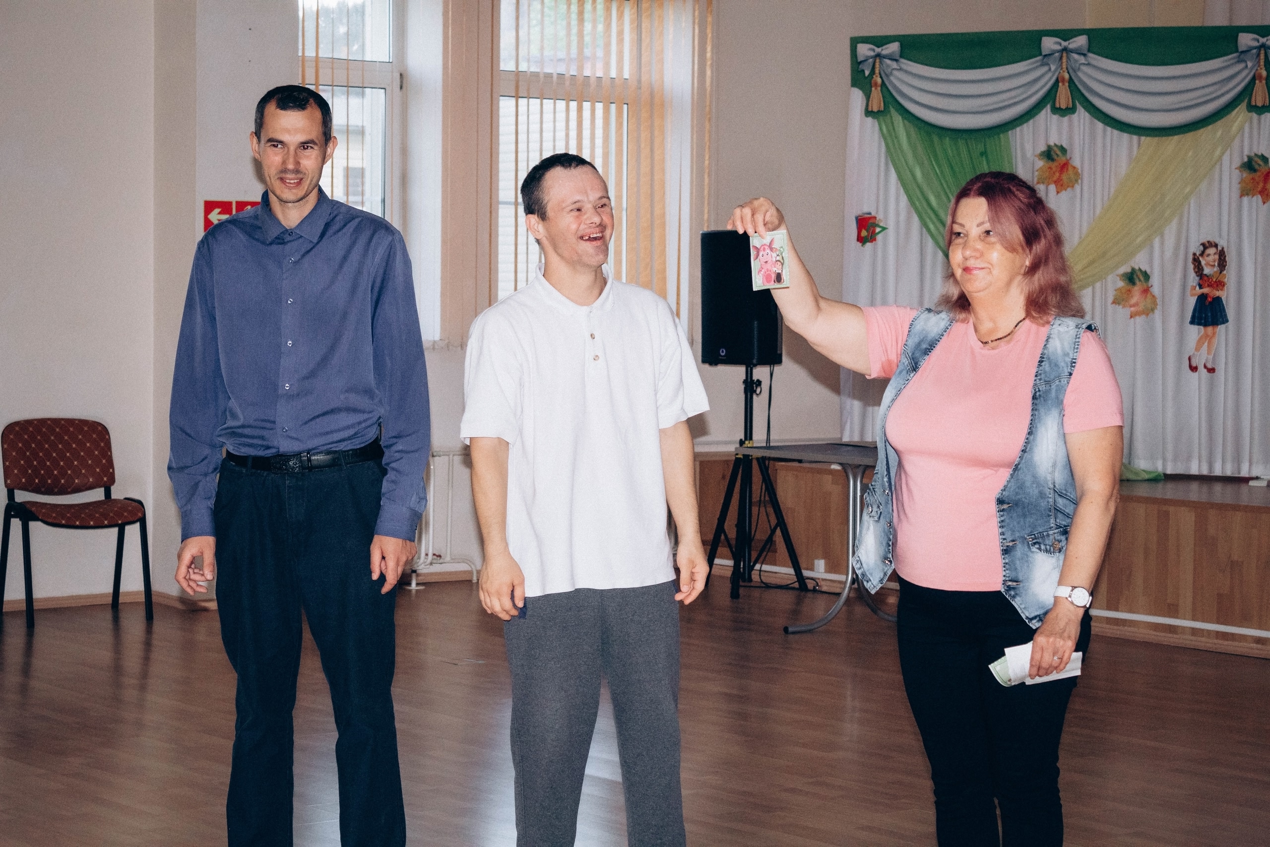 | Воспитанники играют в игру | Молодые люди танцуют | Молодой человек и специалист играют в викторину |