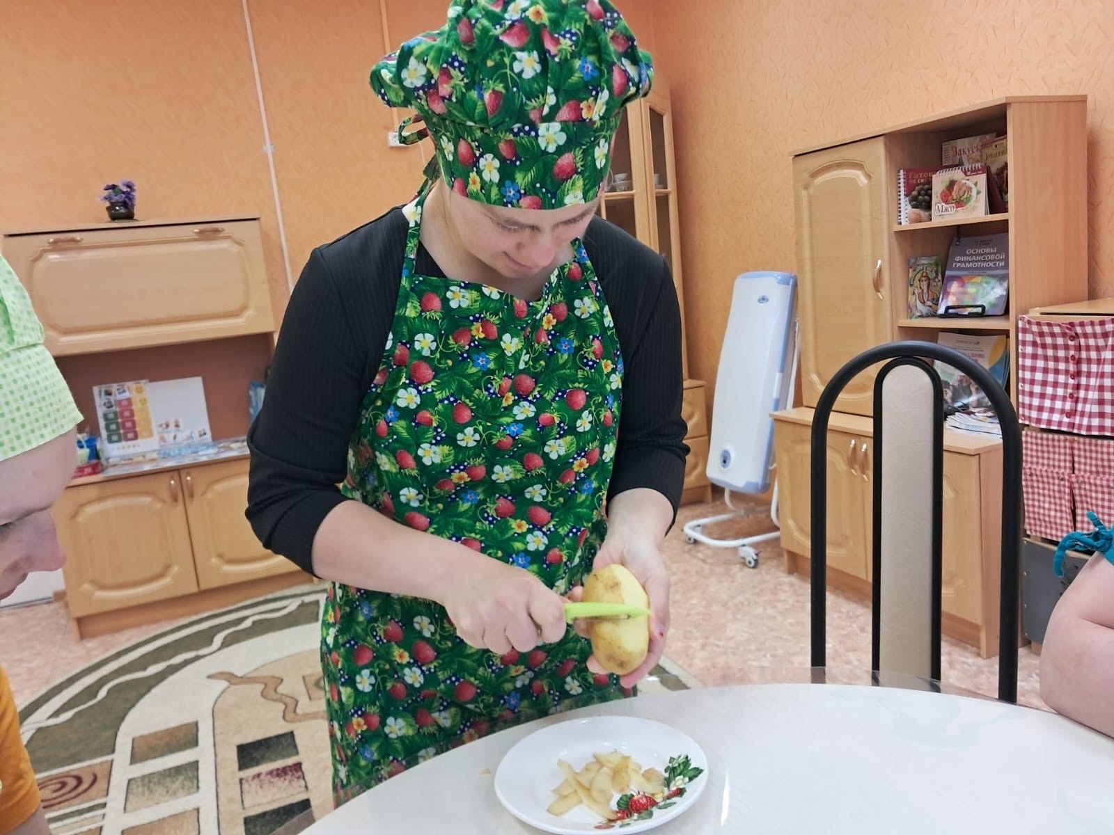 В доме-интернате состоялось занятие по кулинарному искусству «Картофельный пир» в рамках реализации образовательной программы по здоровому питанию. Девушки вместе со специалистами изучили тонкости приготовления картофеля — очищение, нарезку и способы варки. Особое внимание уделилось сервировке стола и подаче блюда. Во время занятия повторили правила использования столовых приборов и основные нормы поведения за обеденным столом. Завершилось мероприятие рассказом о пользе отварного картофеля и содержащихся в нем витаминах и минералах. Специалисты по реабилитации напомнили воспитанницам о важности заботы о собственном здоровье. Правильный рацион способствует поддержанию хорошего самочувствия и энергии.