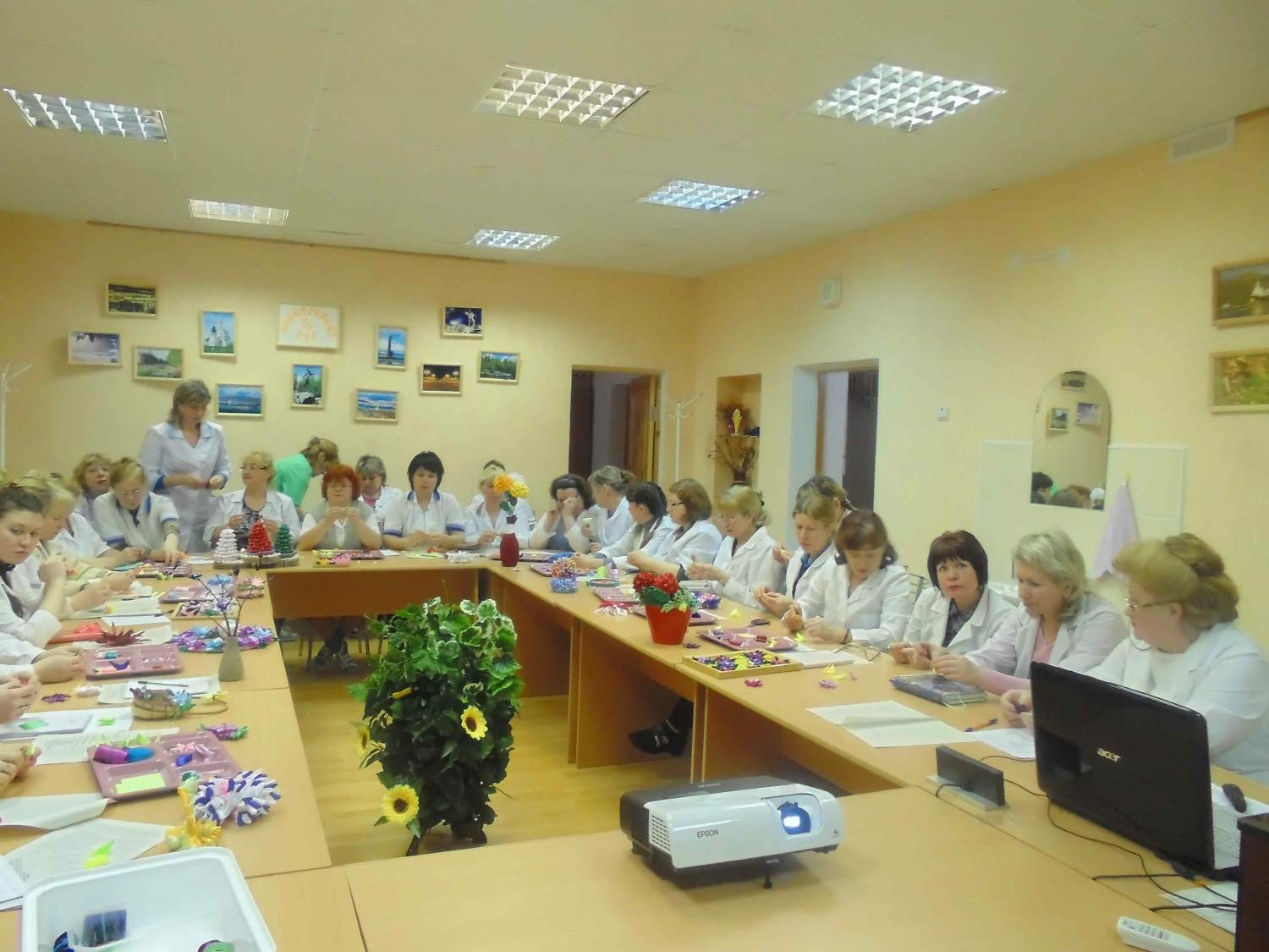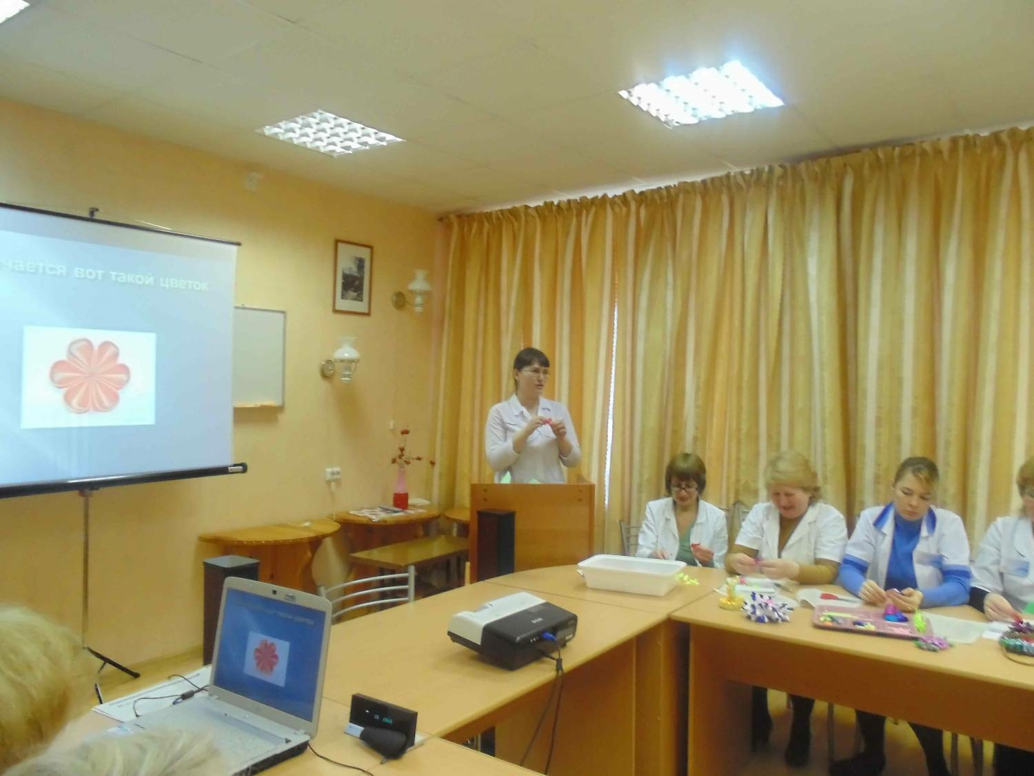 Вторая часть МО была полностью посвящена творчеству. И.Г. Степанюк и И.А. Заборщикова провели мастер-класс, посвященный старейшему виду японского рукоделия «Канзаши». Они поделились с коллегами своим, адаптированным под наши условия, вариантом изготовления канзаши.
