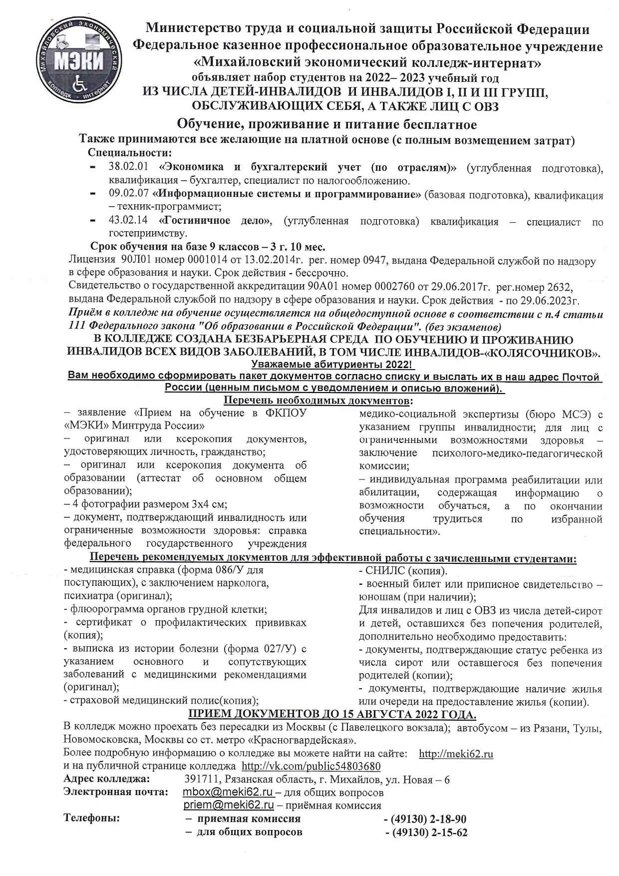 О наборе студентов