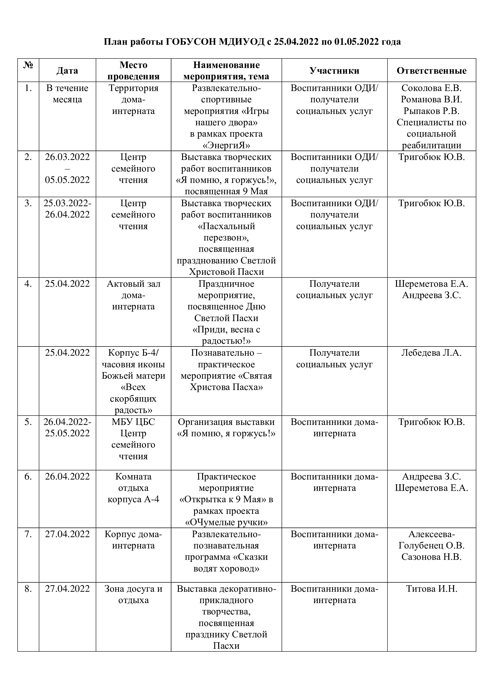 ПЛАН РАБОТЫ ГОБУСОН МДИУОД С 25.04.2022 ГОДА ПО 01.05.2022 ГОДА