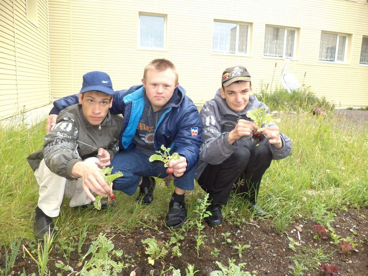 В мае на территории отделения молодых инвалидов ребята вместе с педагогами Заборщиковой И.А. и Чистяковой И.Ю. разбили экспериментальный огород, на котором посадили горох, картофель, лук, редис и салат.