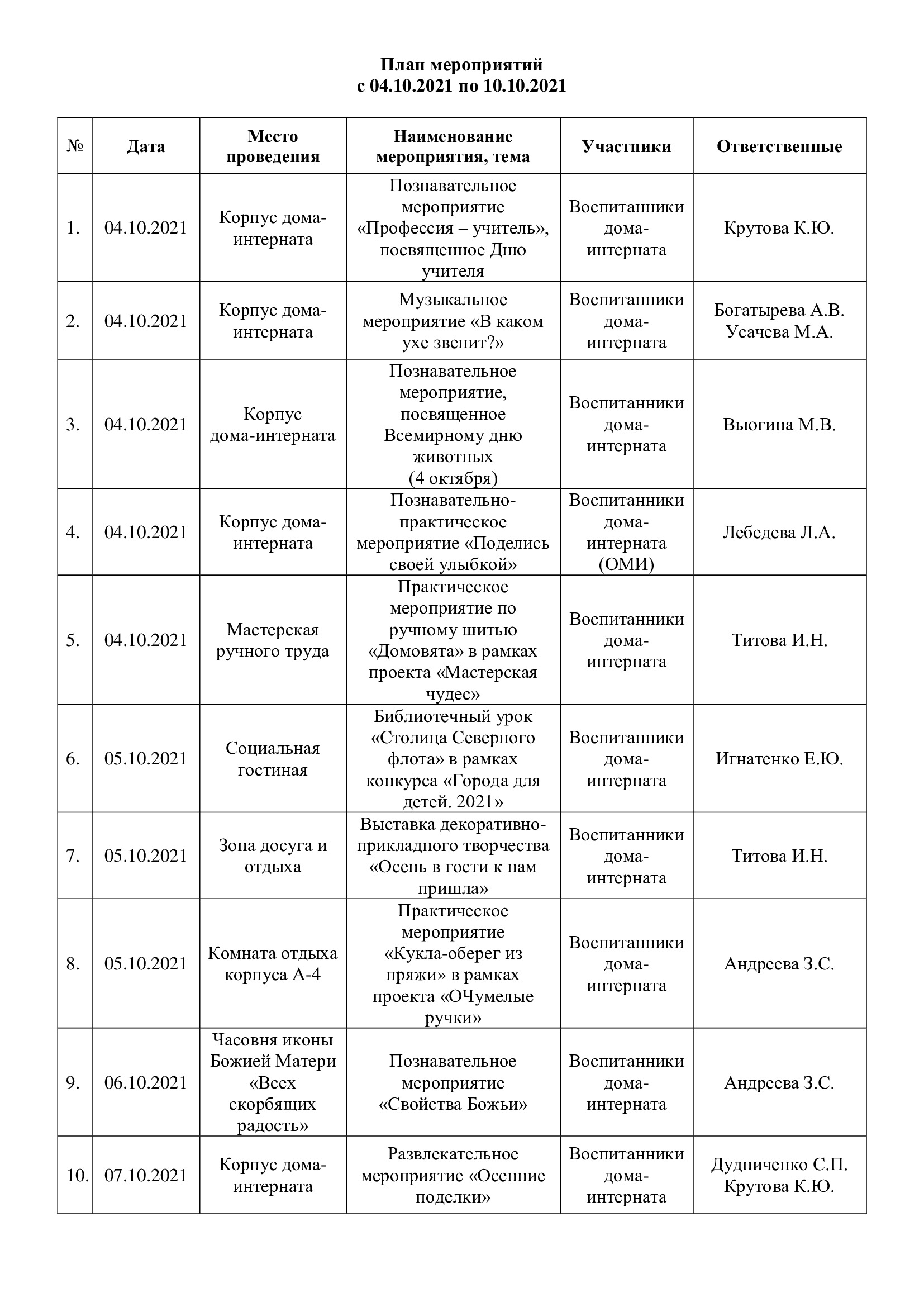 План мероприятий с 04.10.2021 по 10.10.2021
