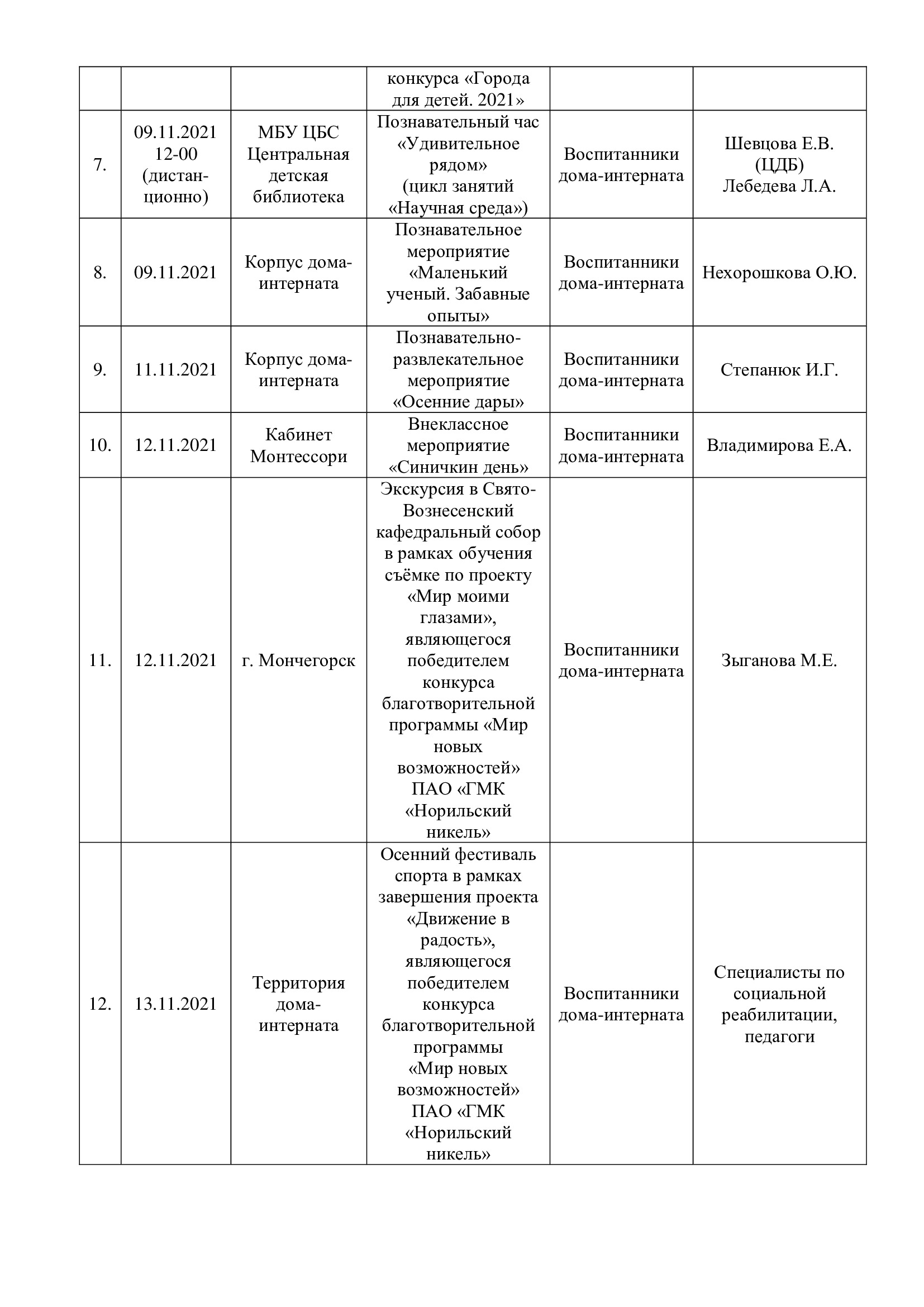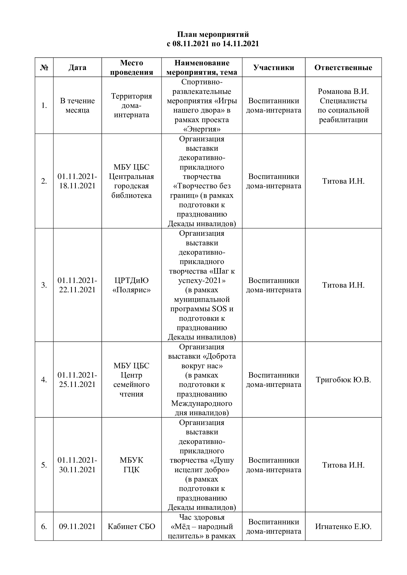 План мероприятий с 08.11.2021 по 14.11.2021