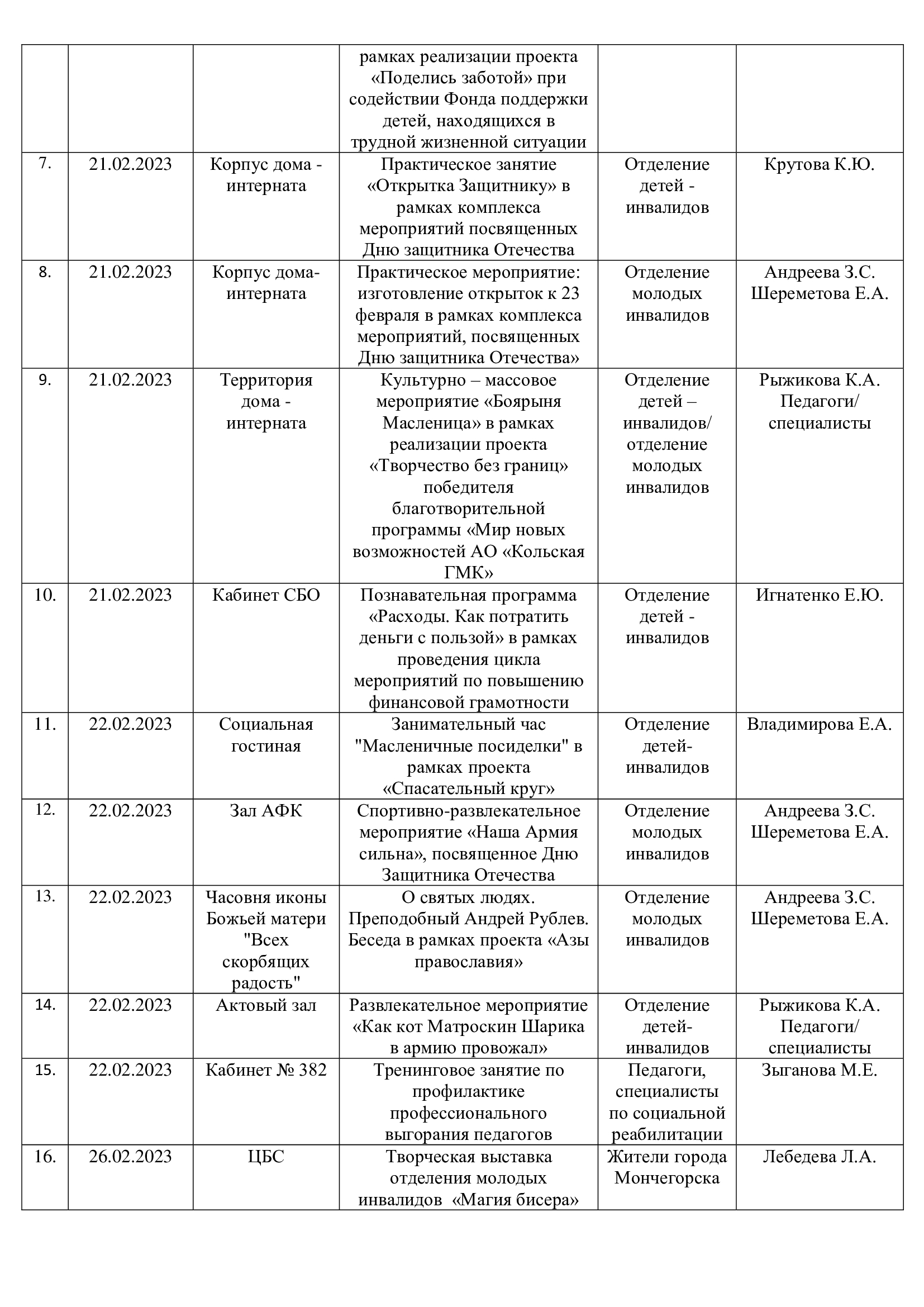 План мероприятий с 20.02.2023 по 26.02.2023 года