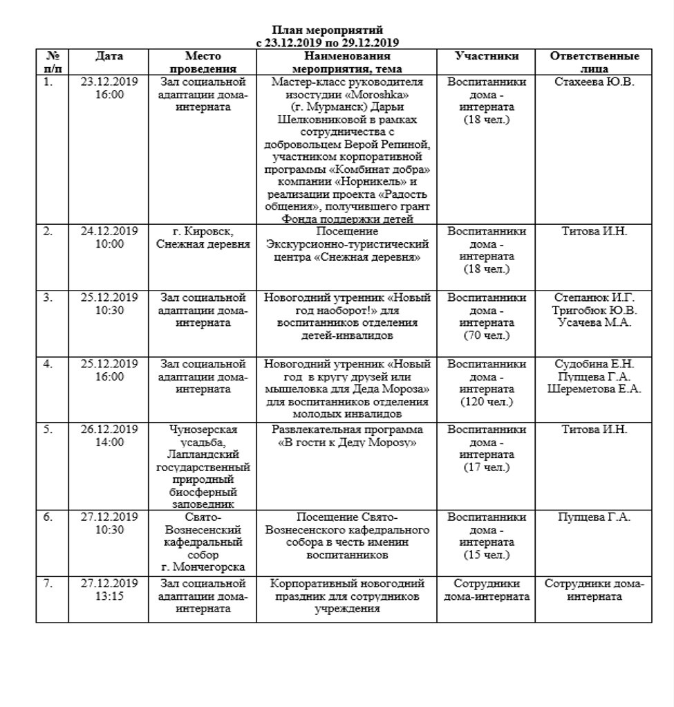 План мероприятий с 23.12.2019 по 29.12.2019