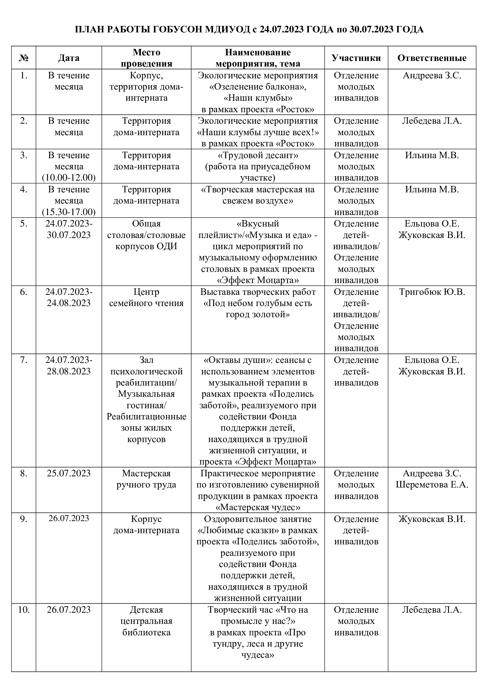 План мероприятий с 24.07.2023 по 30.07.2023