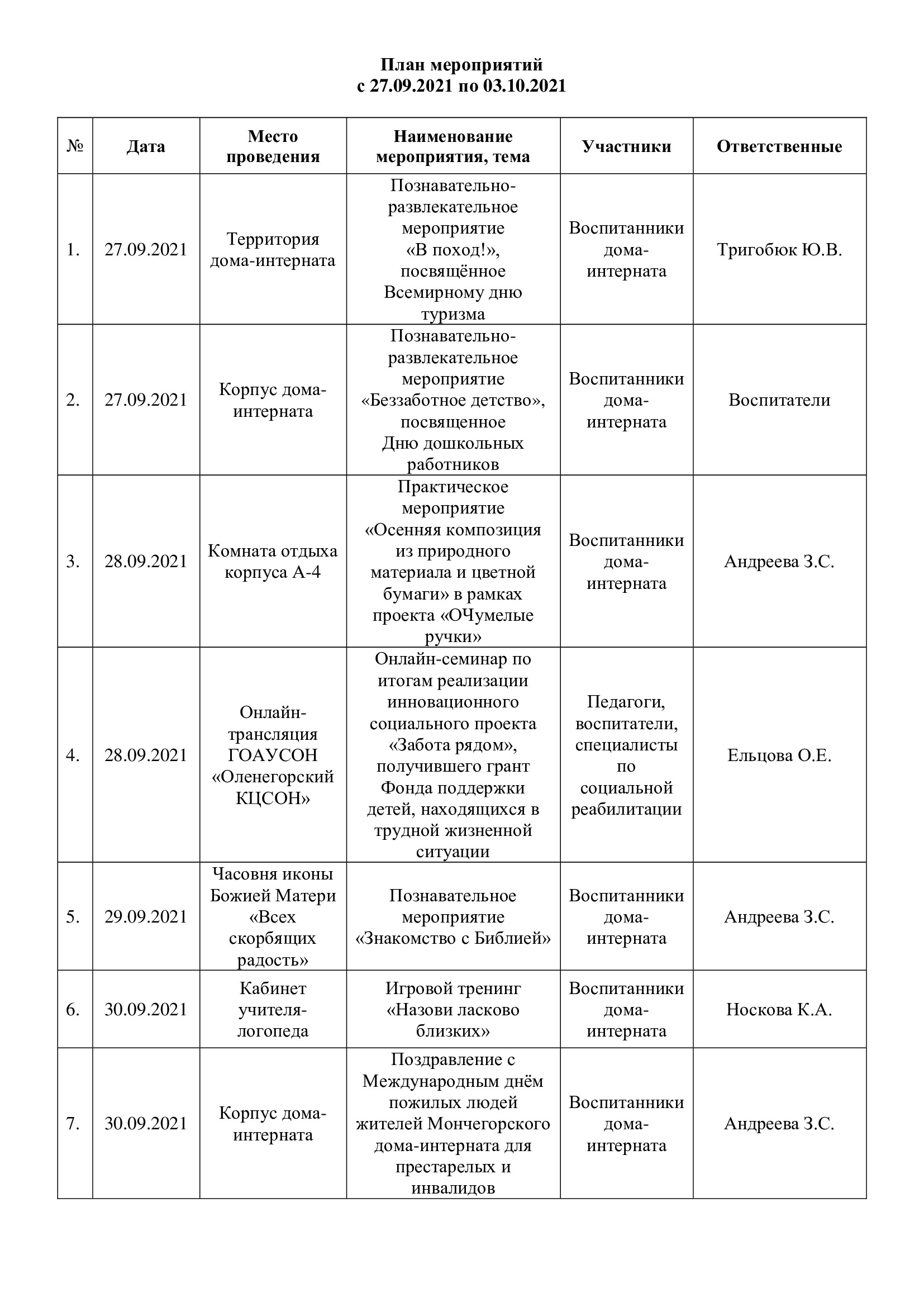 План мероприятий с 27.09.2021 по 03.10.2021