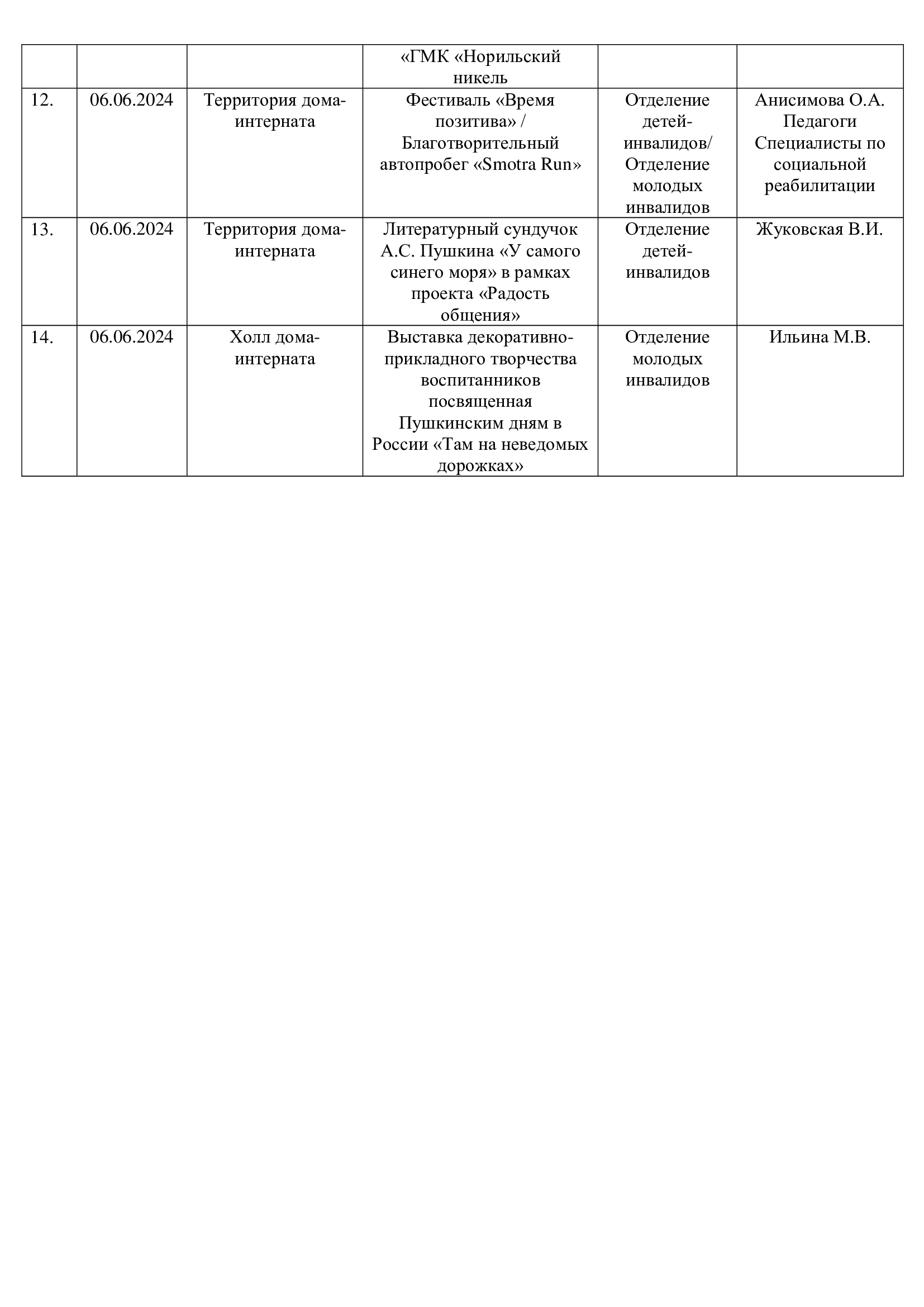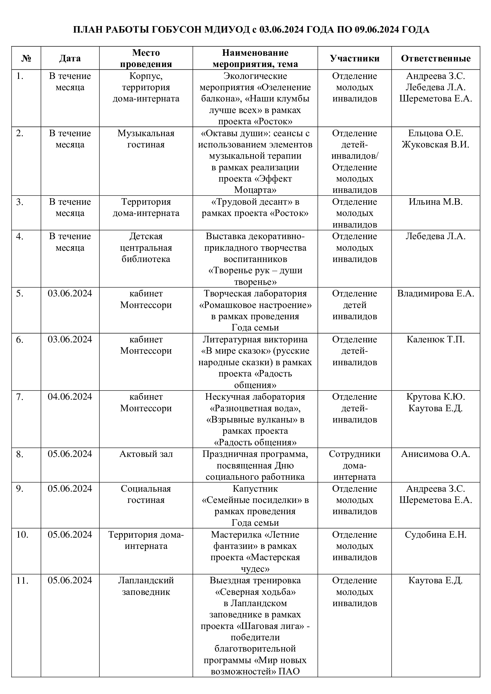 План работы ГОБУСОН МДИУОД с 03.06.2024 по 09.06.2024