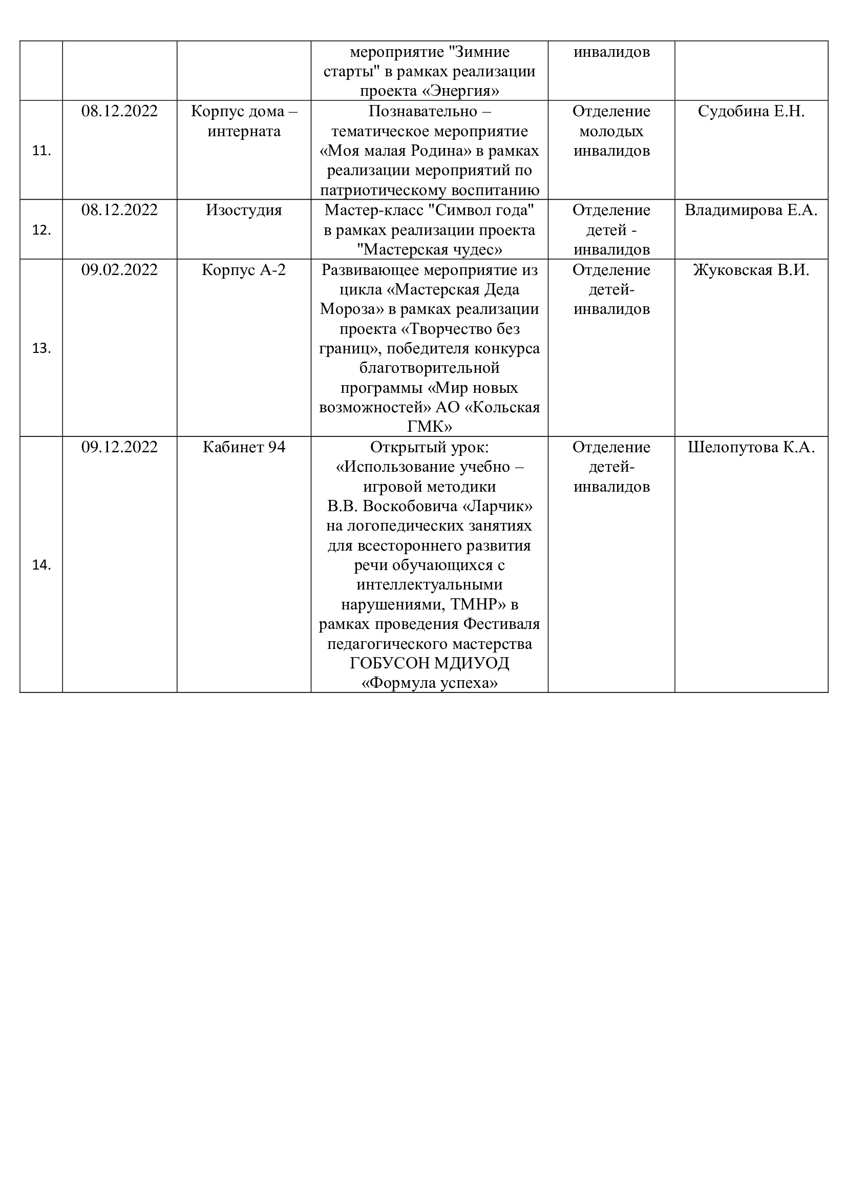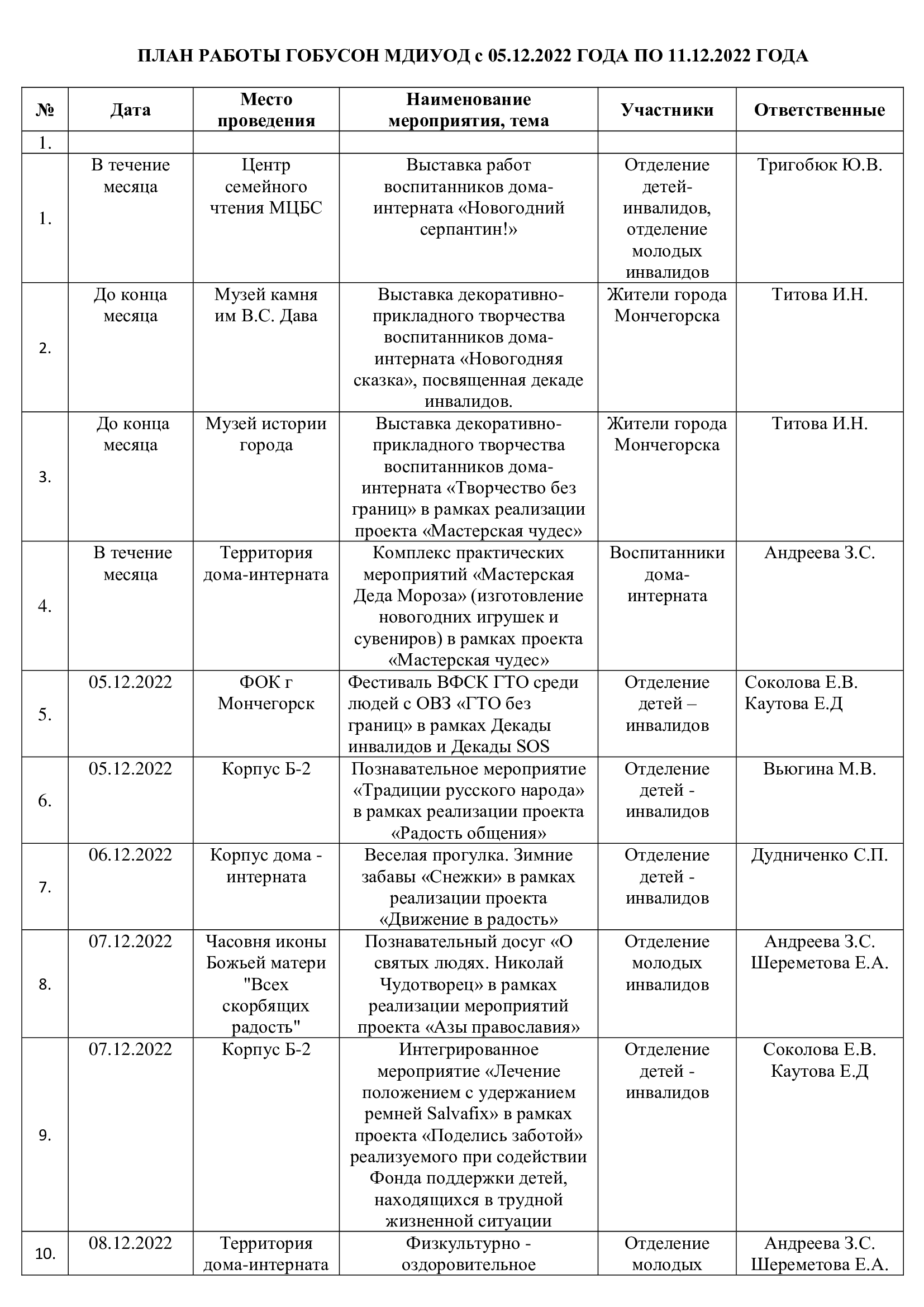 План работы ГОБУСОН МДИУОД с 05.12.2022 года по 11.12.2022 года