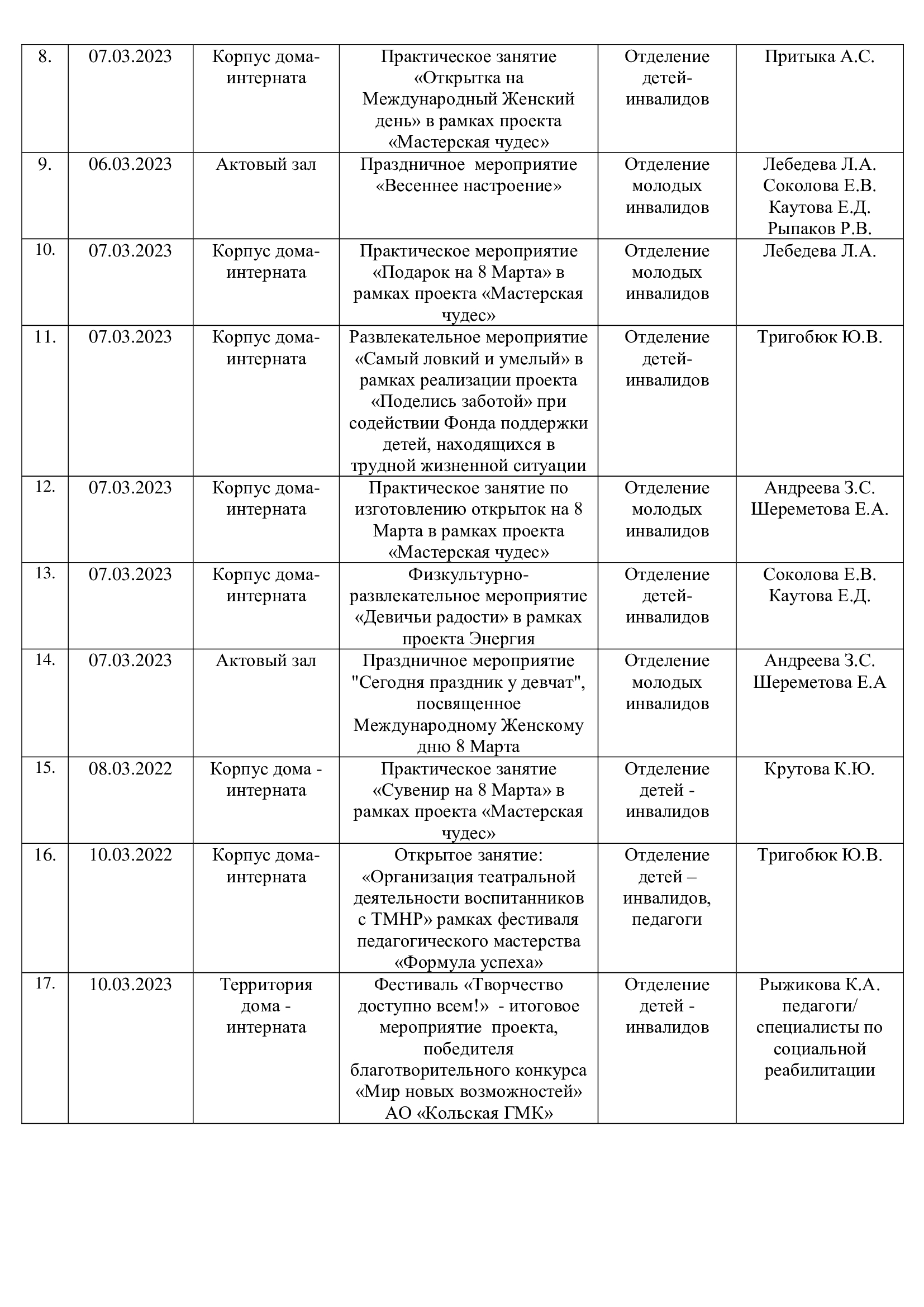 План работы ГОБУСОН МДИУОД с 06 марта 2023 года по 12 марта 2023 года