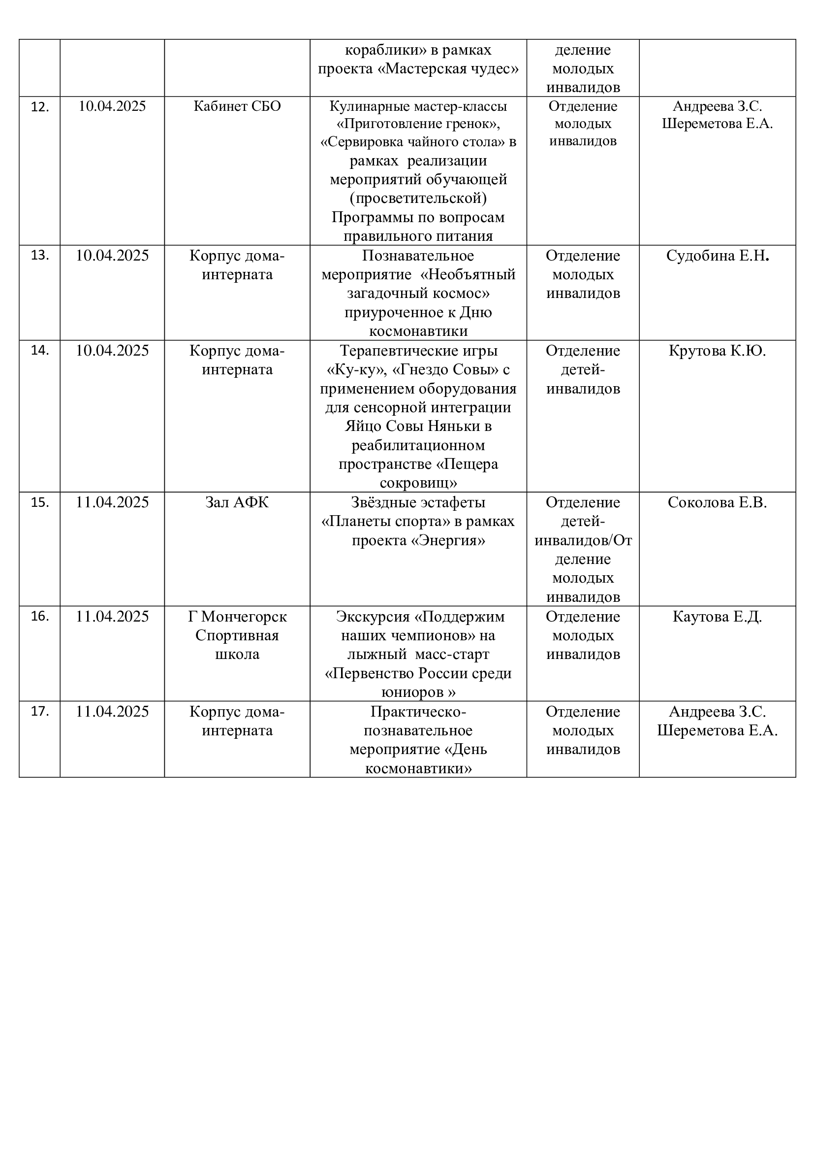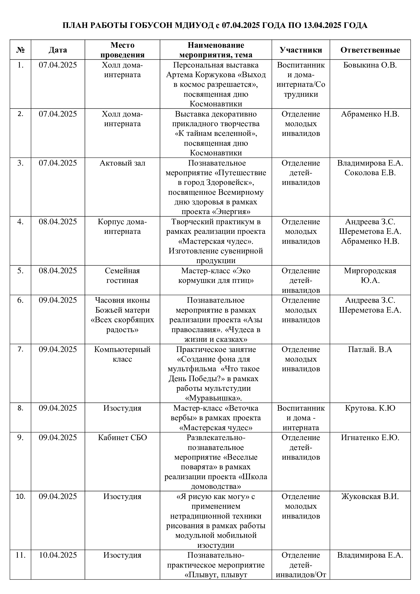 План работы ГОБУСОН МДИУОД с 07 апреля по 13 апреля 2025 года