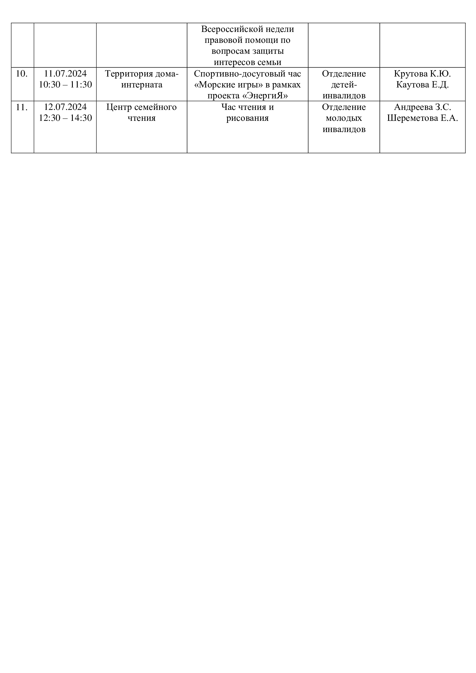 План работы ГОБУСОН МДИУОД с 08.07.2024 по 14.07.2024