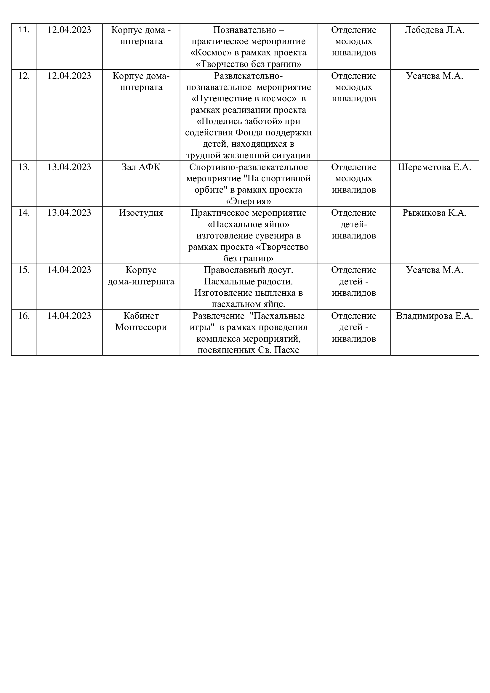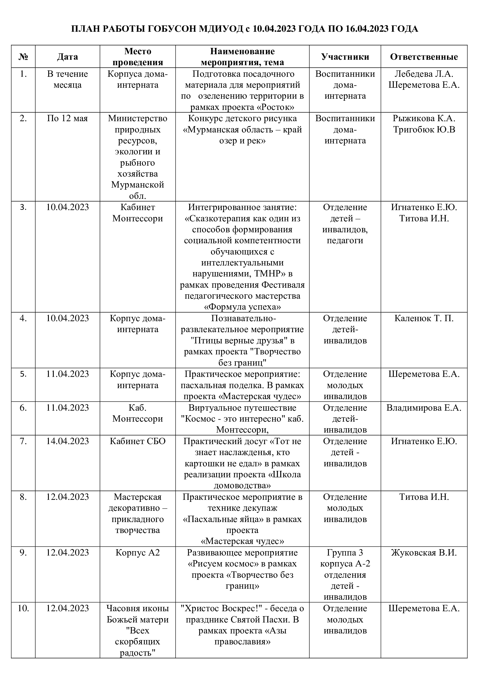 План работы ГОБУСОН МДИУОД с 10 апреля по 16 апреля 2023 года