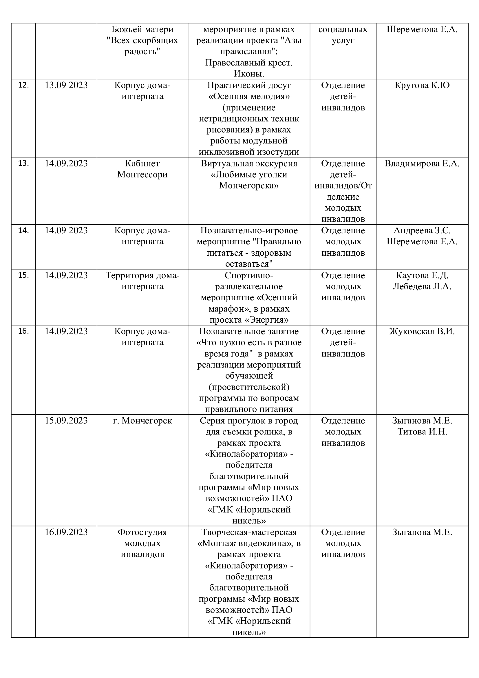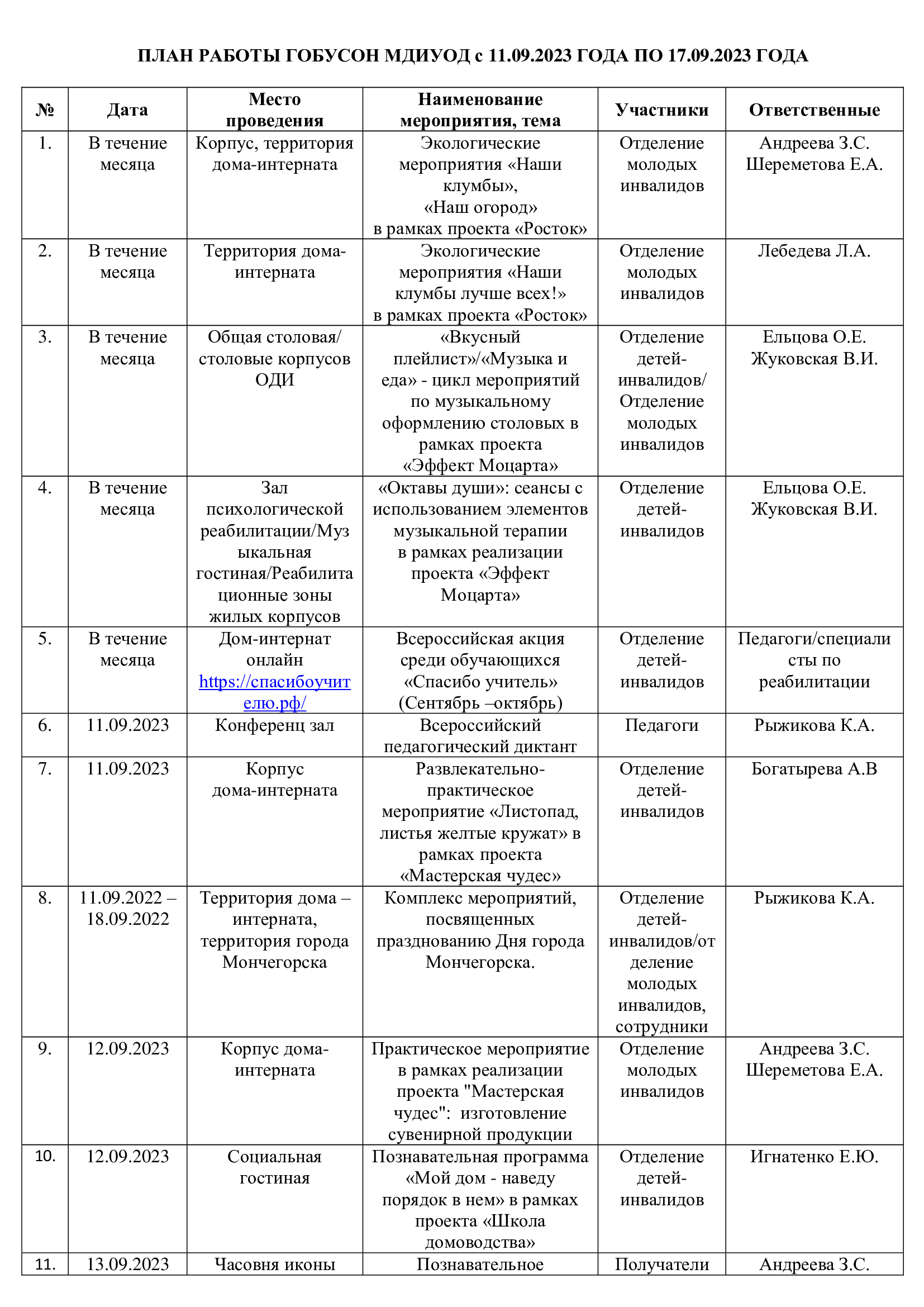 План работы ГОБУСОН МДИУОД с 11 сентября 2023 года по 17 сентября 2023 года