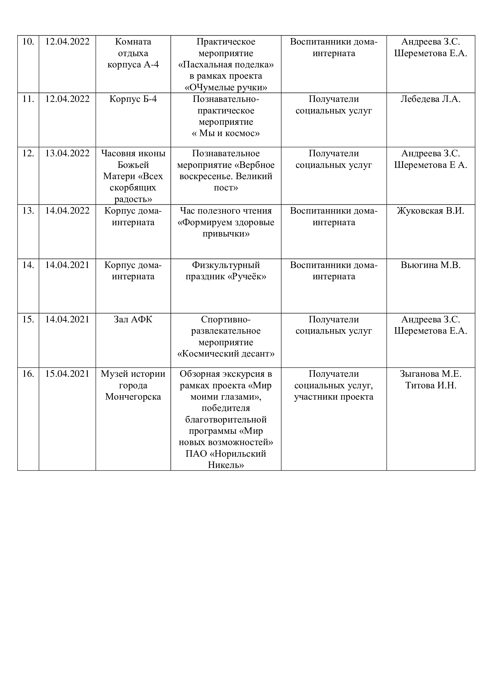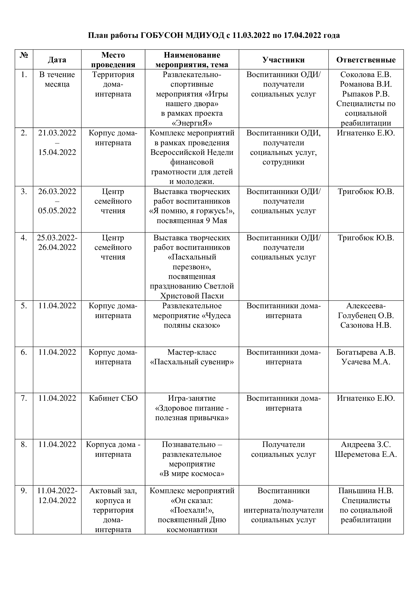 План работы ГОБУСОН МДИУОД с 11.04.2022 года по 17.04.2022 года