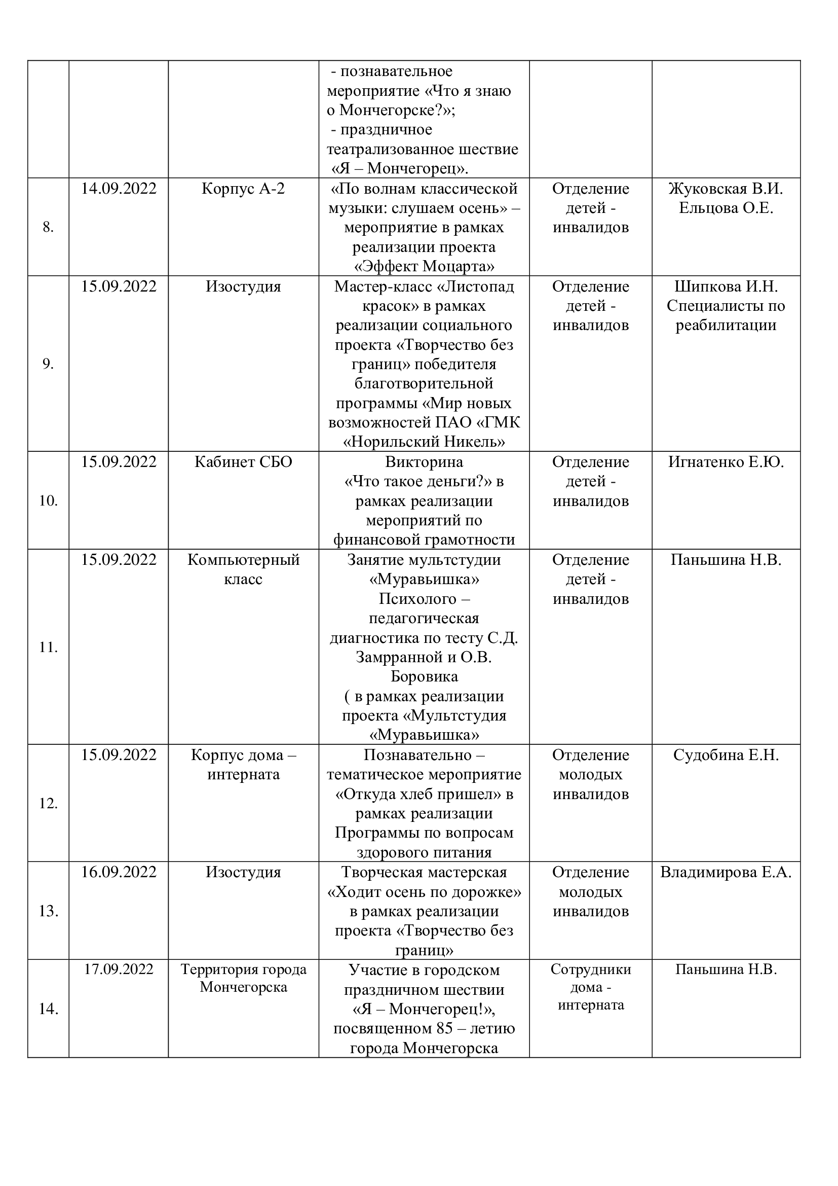 План работы ГОБУСОН МДИУОД с 12.09.2022 года по 18.09.2022 года