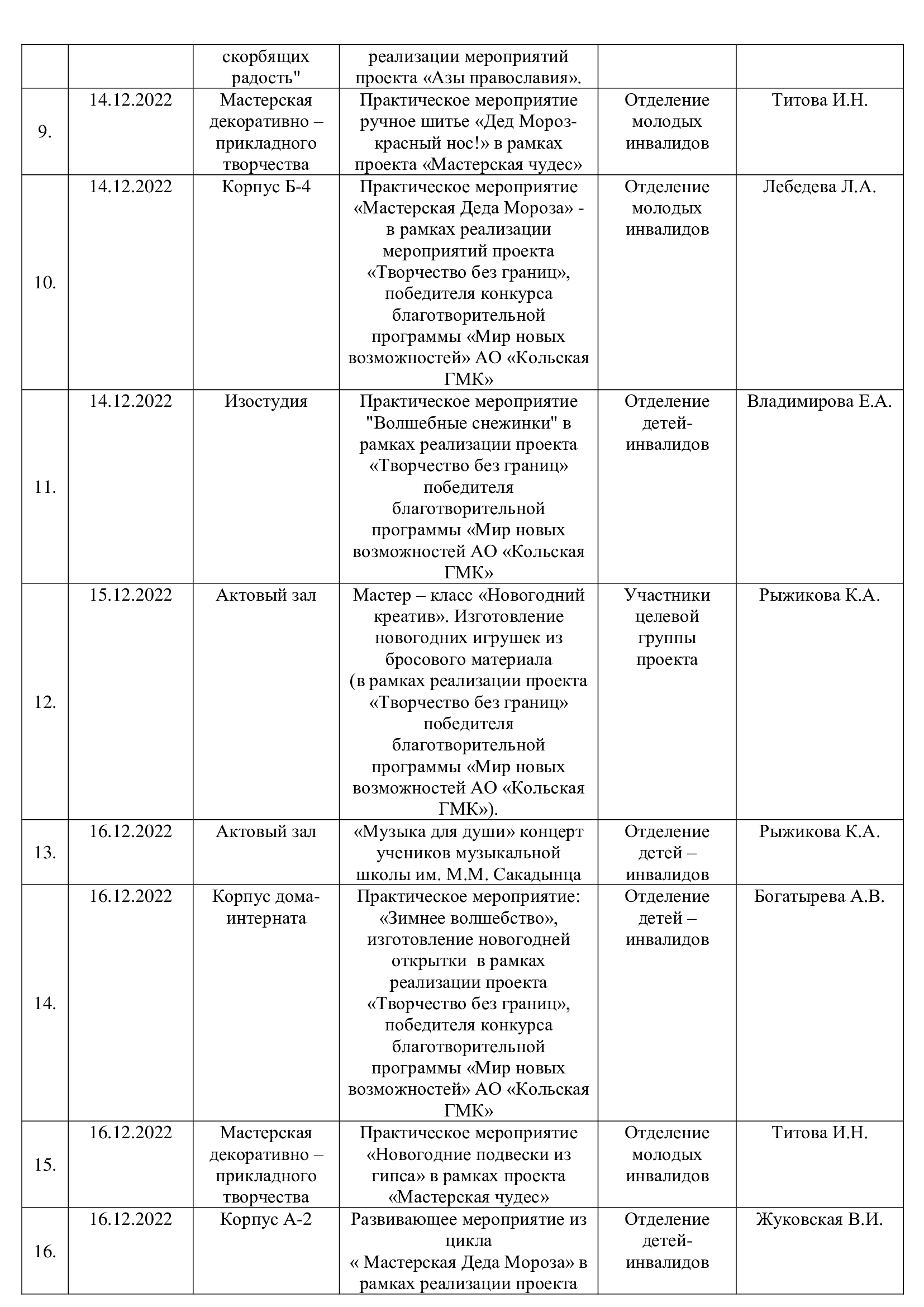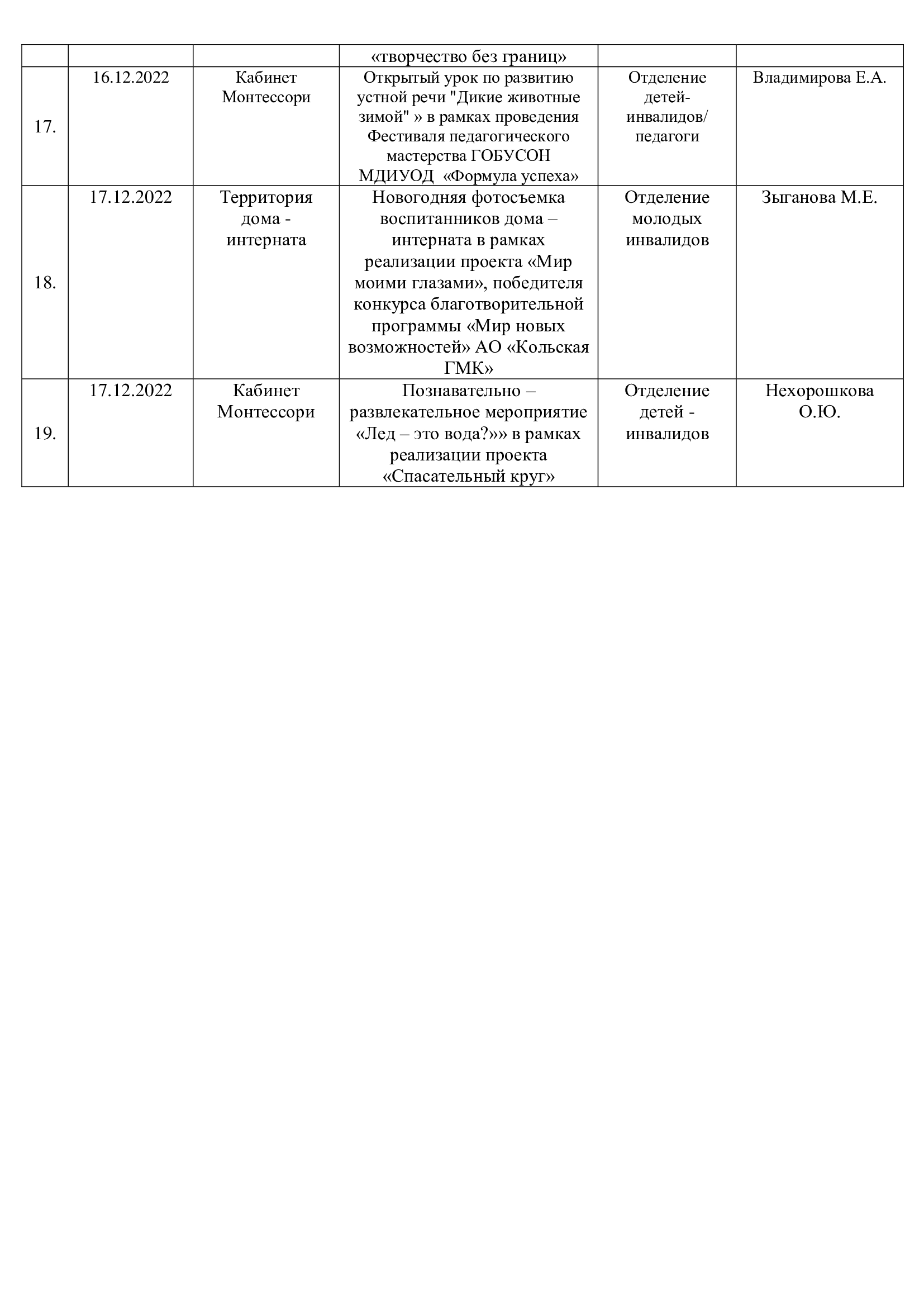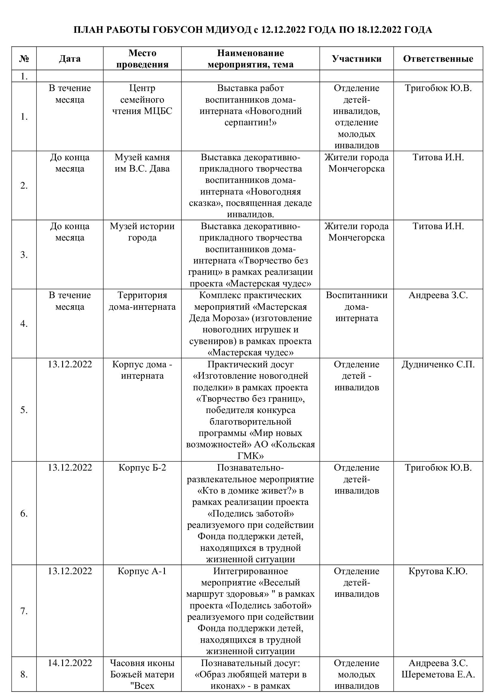 План работы ГОБУСОН МДИУОД с 12.12.2022 года по 18.12.2022 года