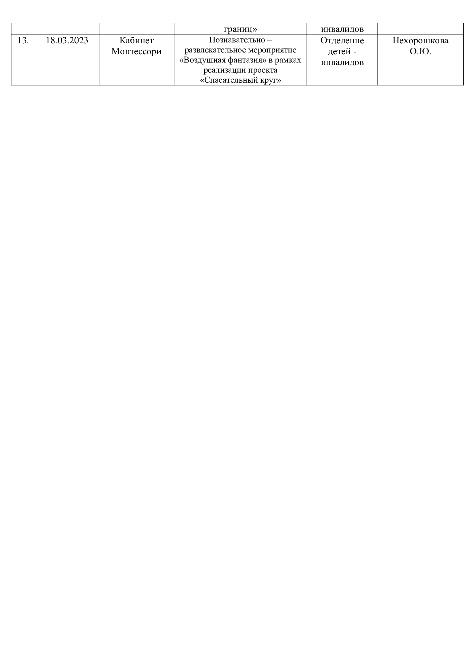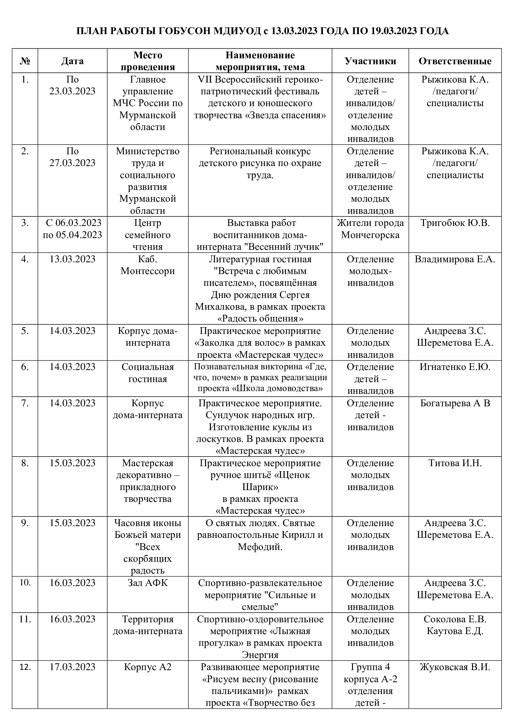 План работы ГОБУСОН МДИУОД с 13 марта 2023 года по 19 марта 2023 года