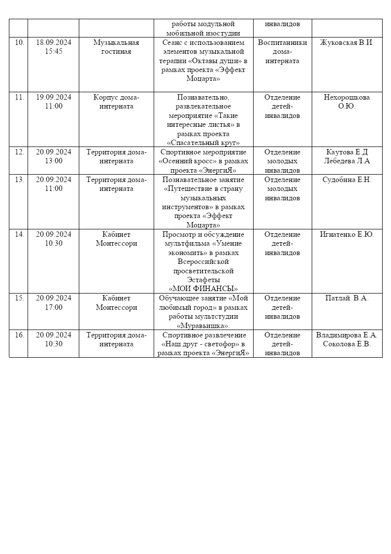 План работы ГОБУСОН МДИУОД с 16 сентября по 22 сентября 2024 года