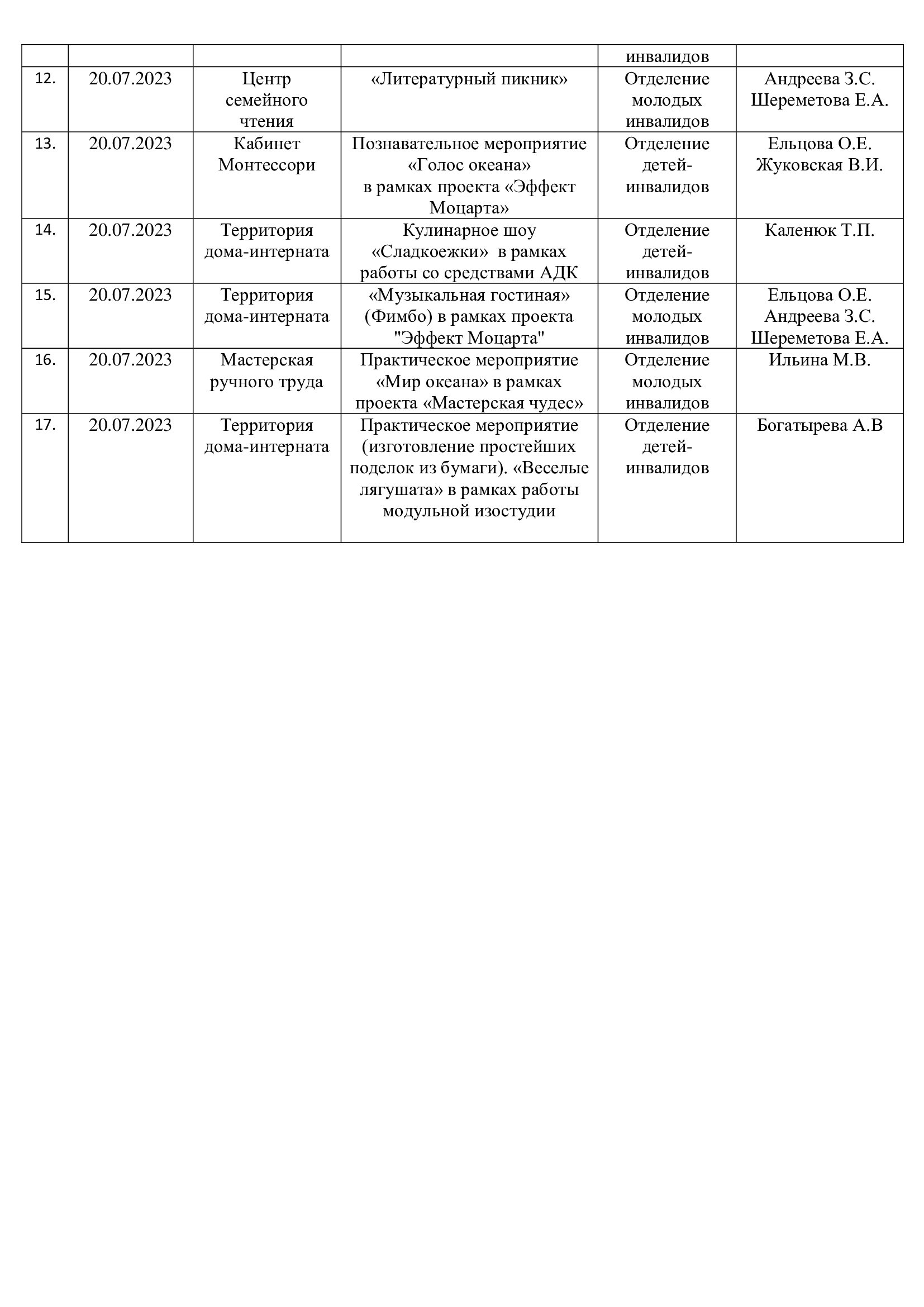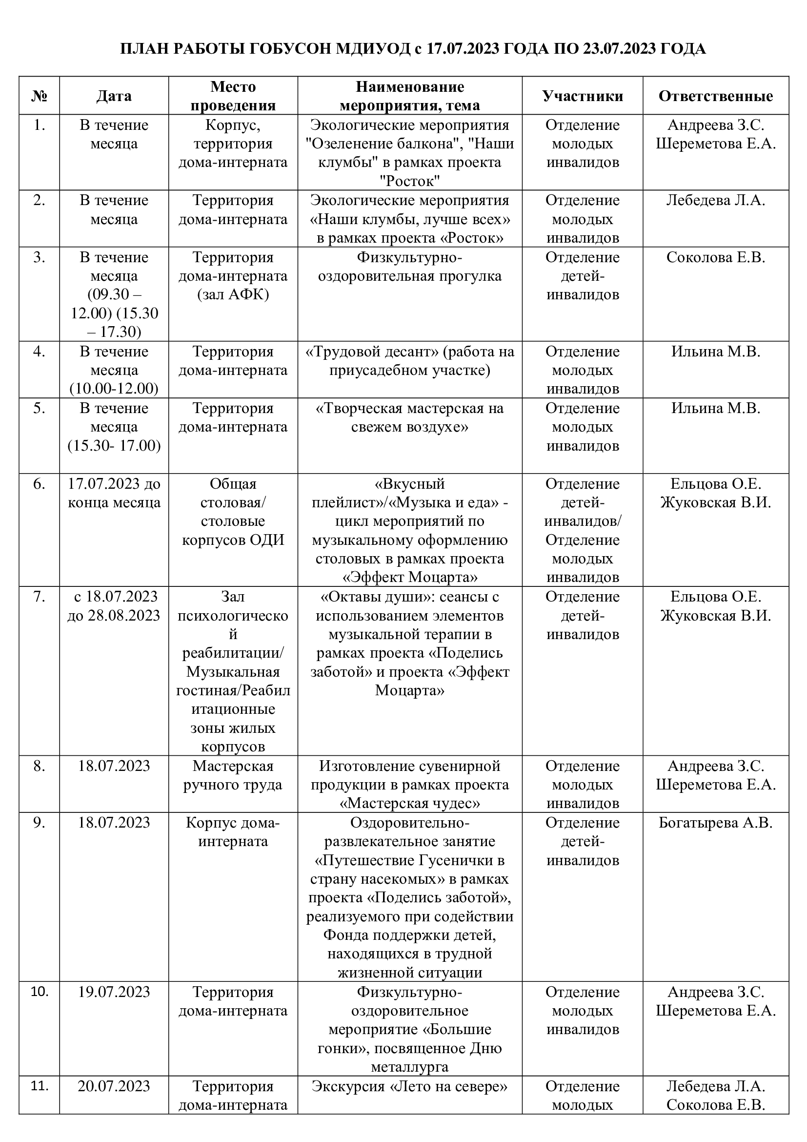 План работы ГОБУСОН МДИУОД с 17 июля по 23 июля 2023 года
