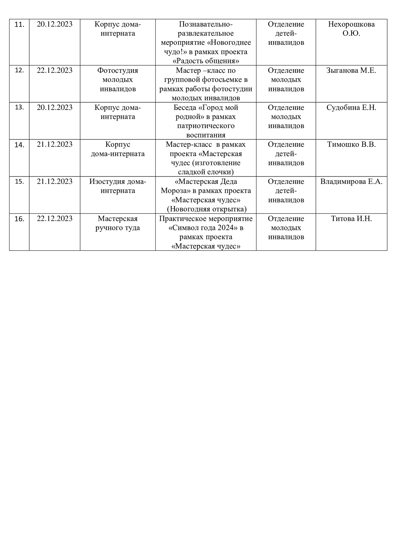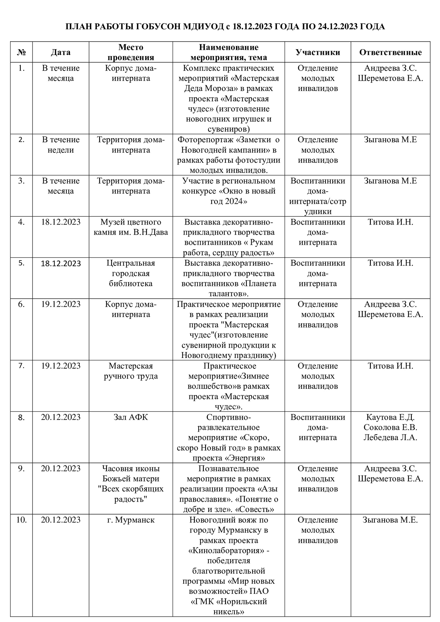 План работы ГОБУСОН МДИУОД с 18 декабря по 24 декабря 2023 года
