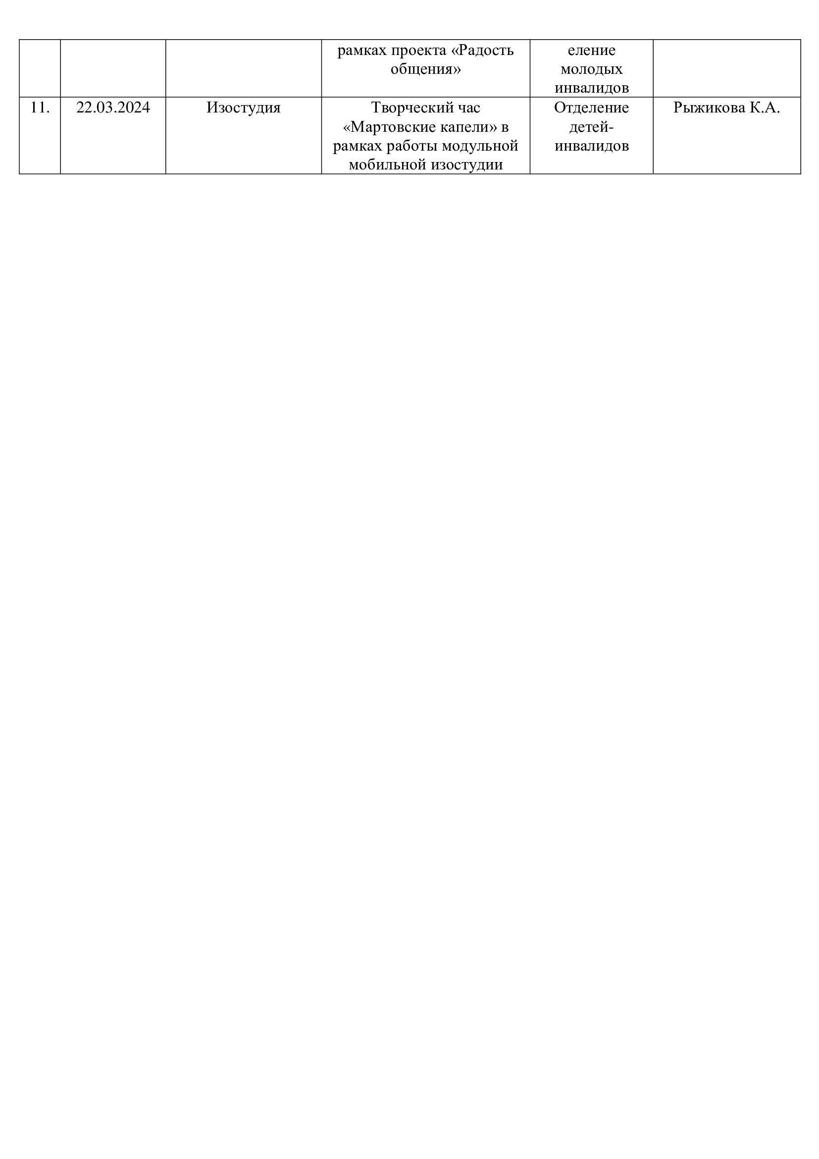План работы ГОБУСОН МДИУОД с 18 марта по 24 марта 2024 года