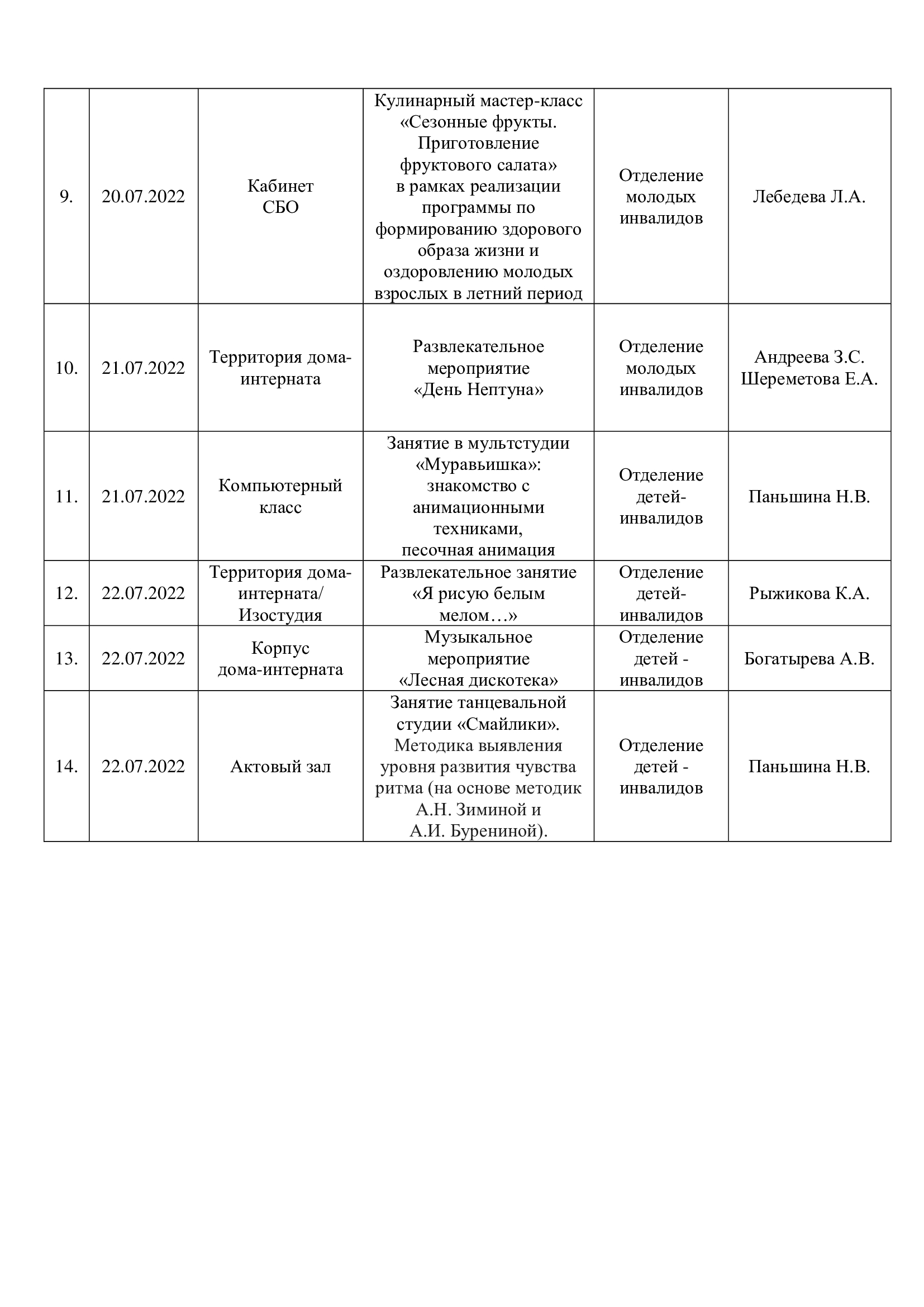 План работы ГОБУСОН МДИУОД с 18.07.2022 по 24.07.2022