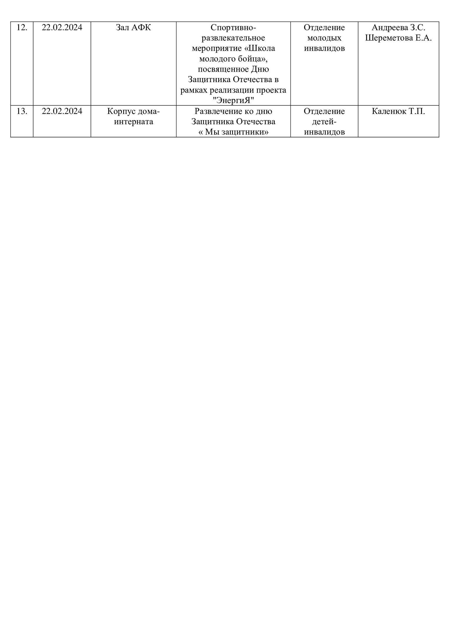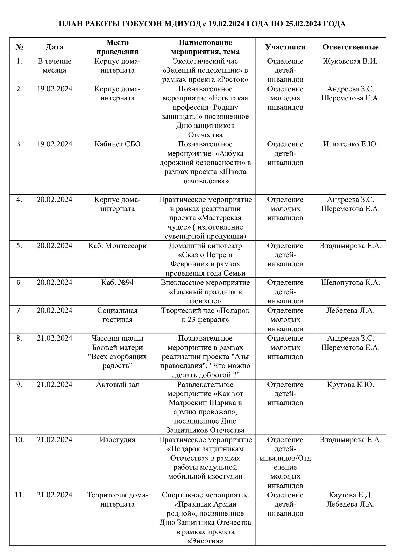 План работы ГОБУСОН МДИУОД с 19 февраля по 25 февраля 2024 года