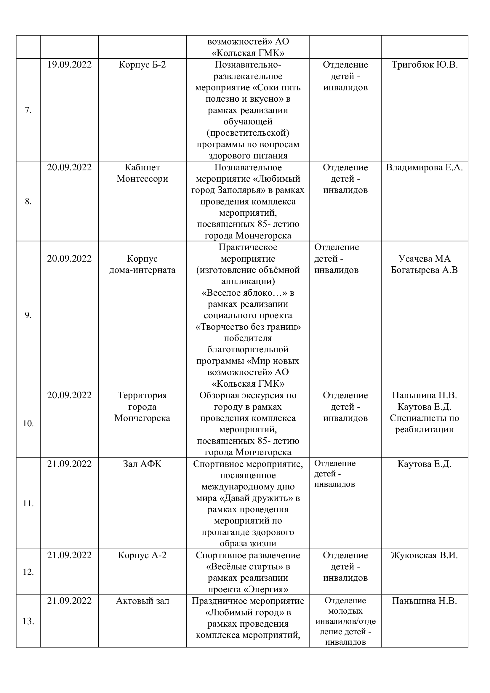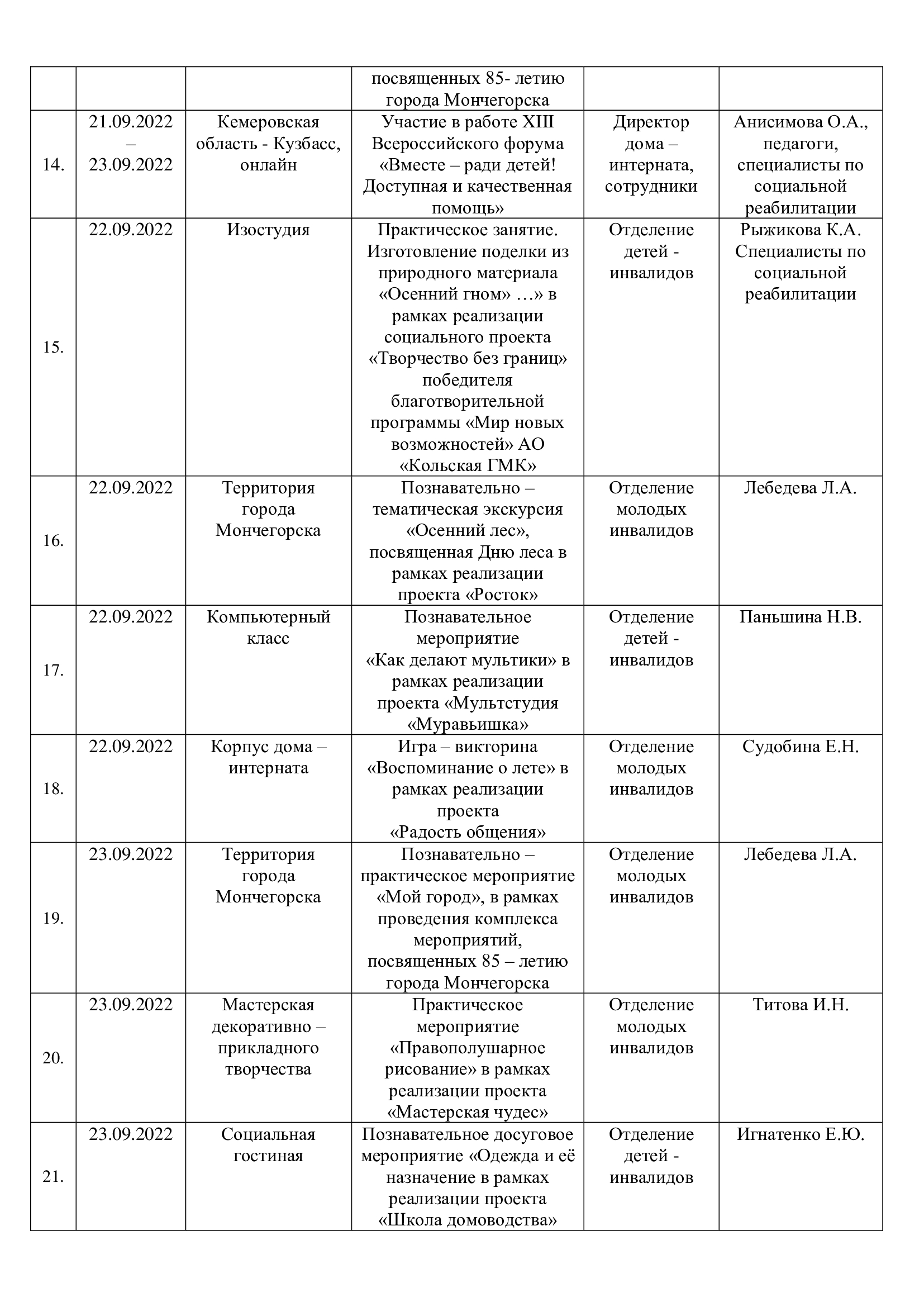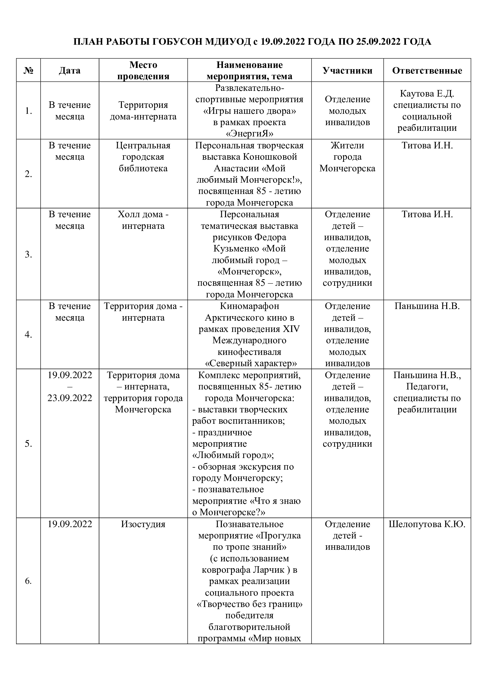 План работы ГОБУСОН МДИУОД с 19.09.2022 года по 25.09.2022 года