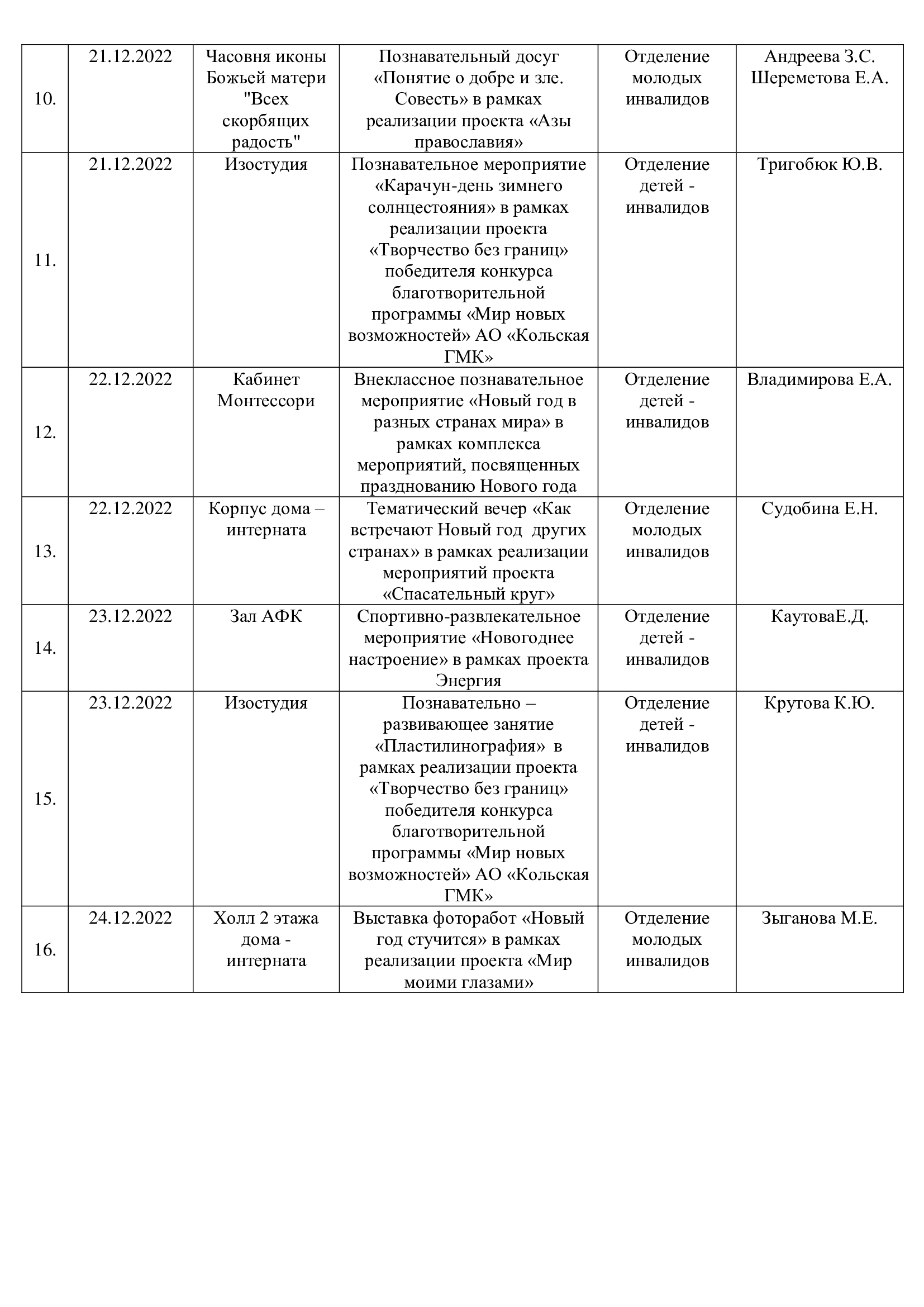 План работы ГОБУСОН МДИУОД с 19.12.2022 года по 25.12.2022 года.