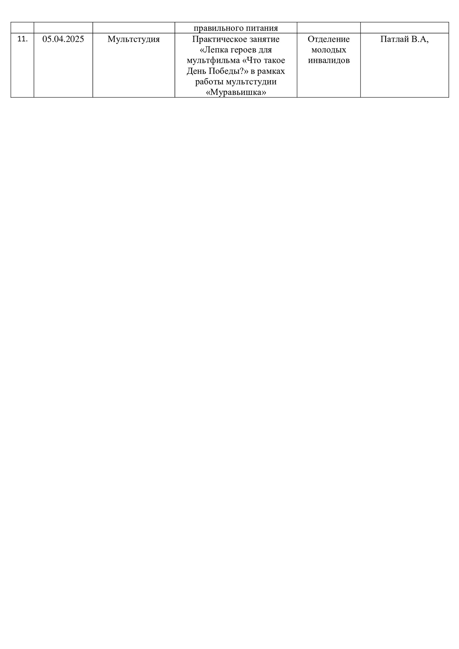 План работы ГОБУСОН МДИУОД с 31 марта по 06 апреля 2025 года