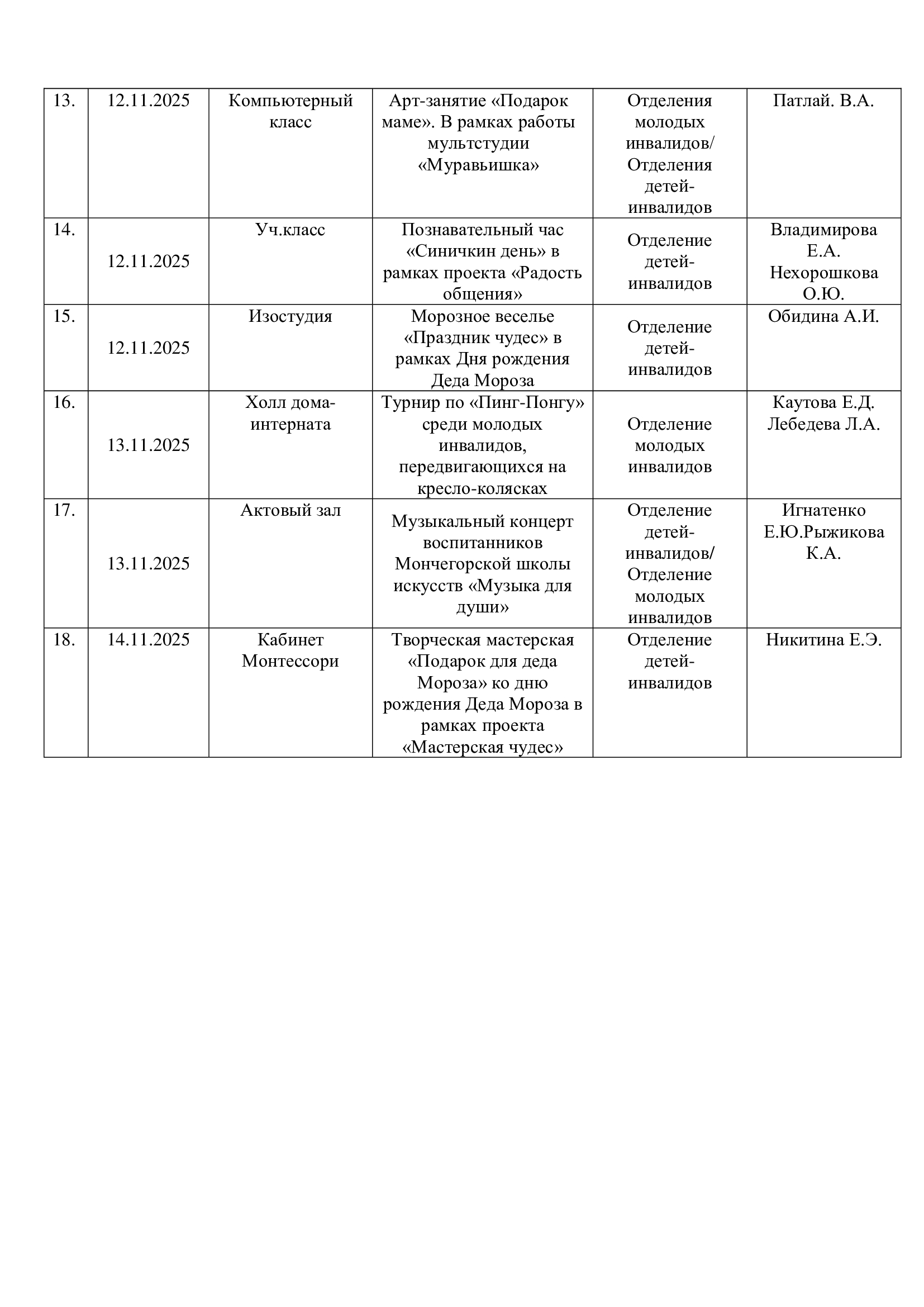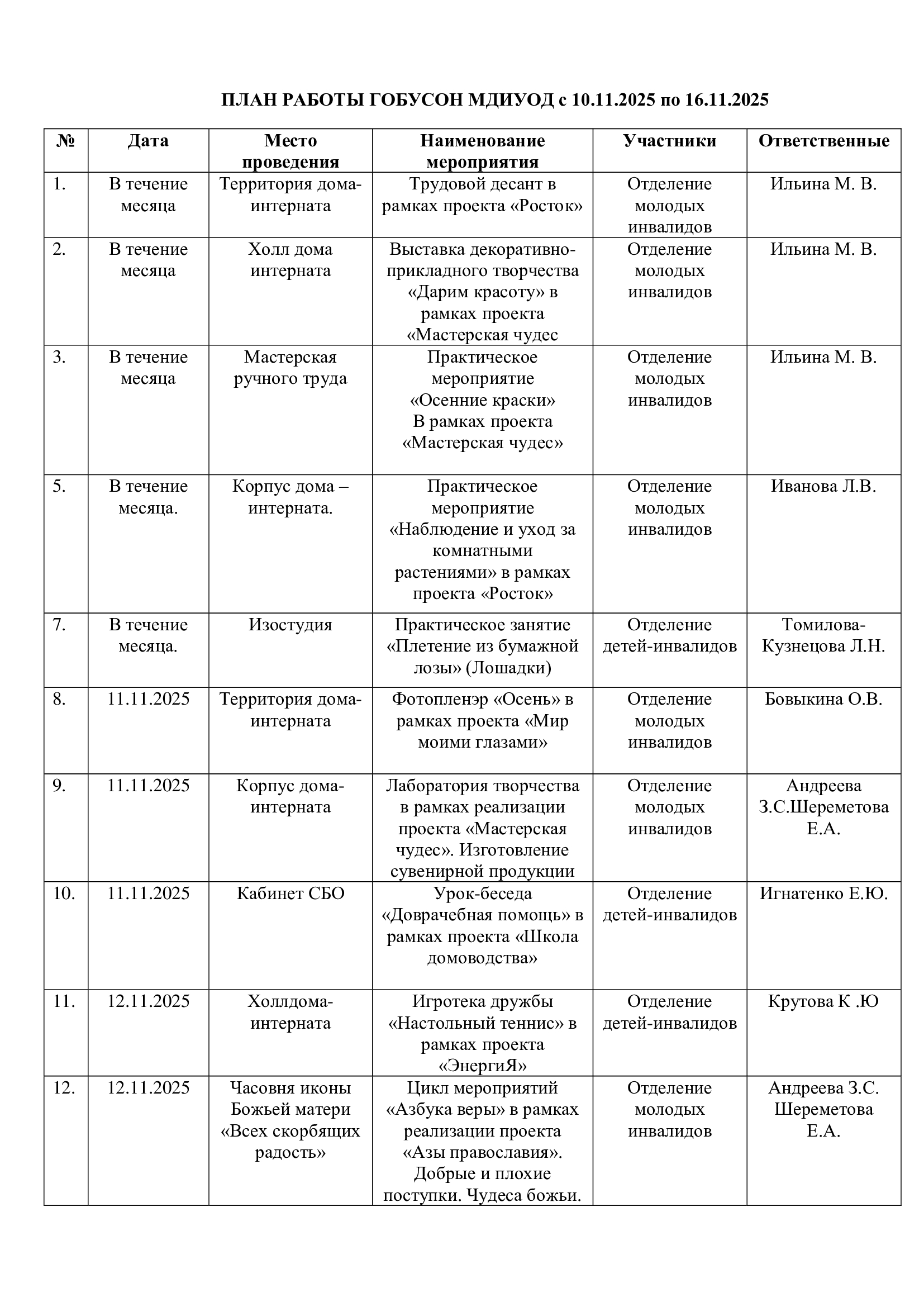 План работы ГОБУСОН МДИУОД с 24 ноября 2025 года по 30 ноября 2025 года