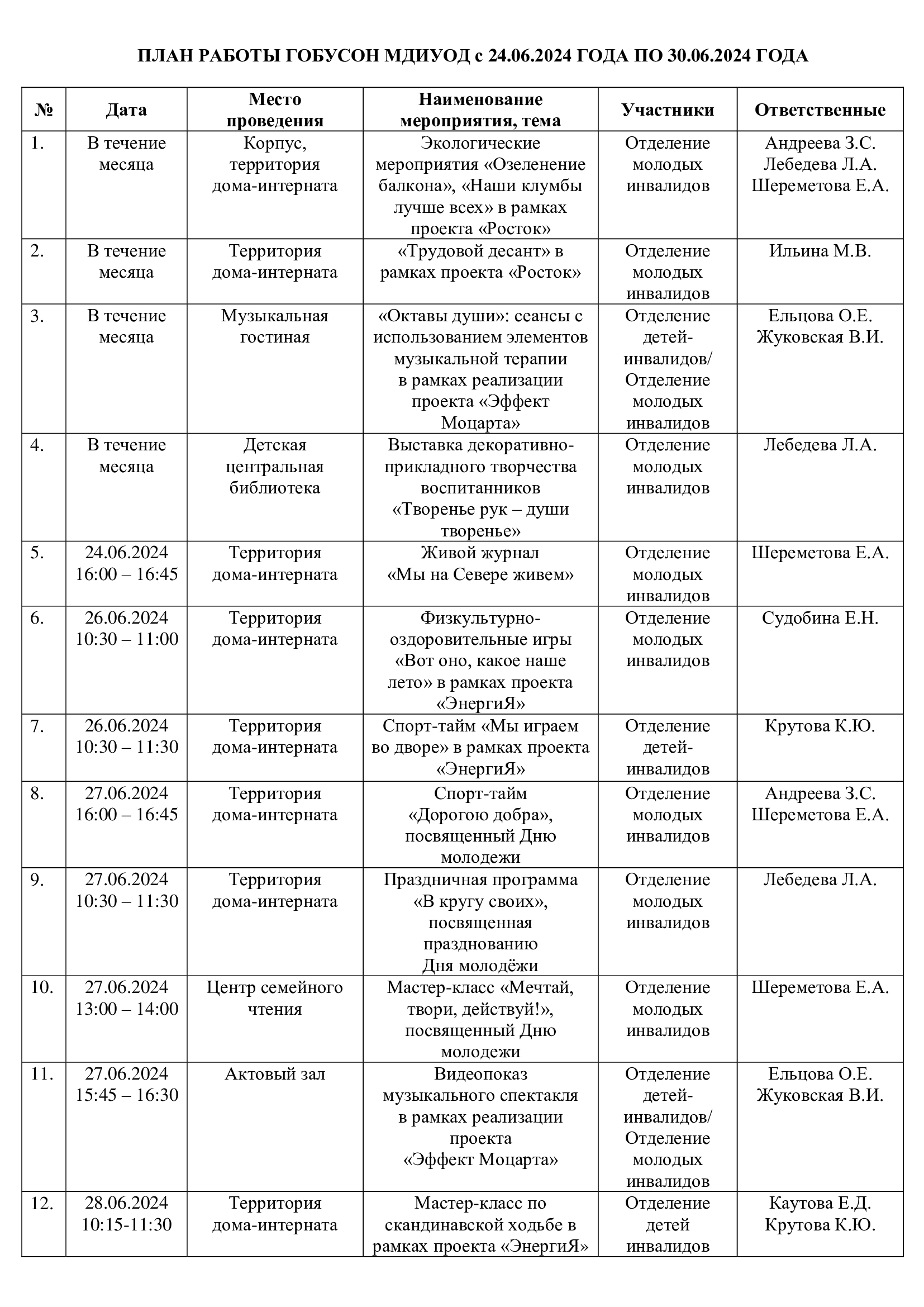 План работы ГОБУСОН МДИУОД с 24.06.2024 по 30.06.2024