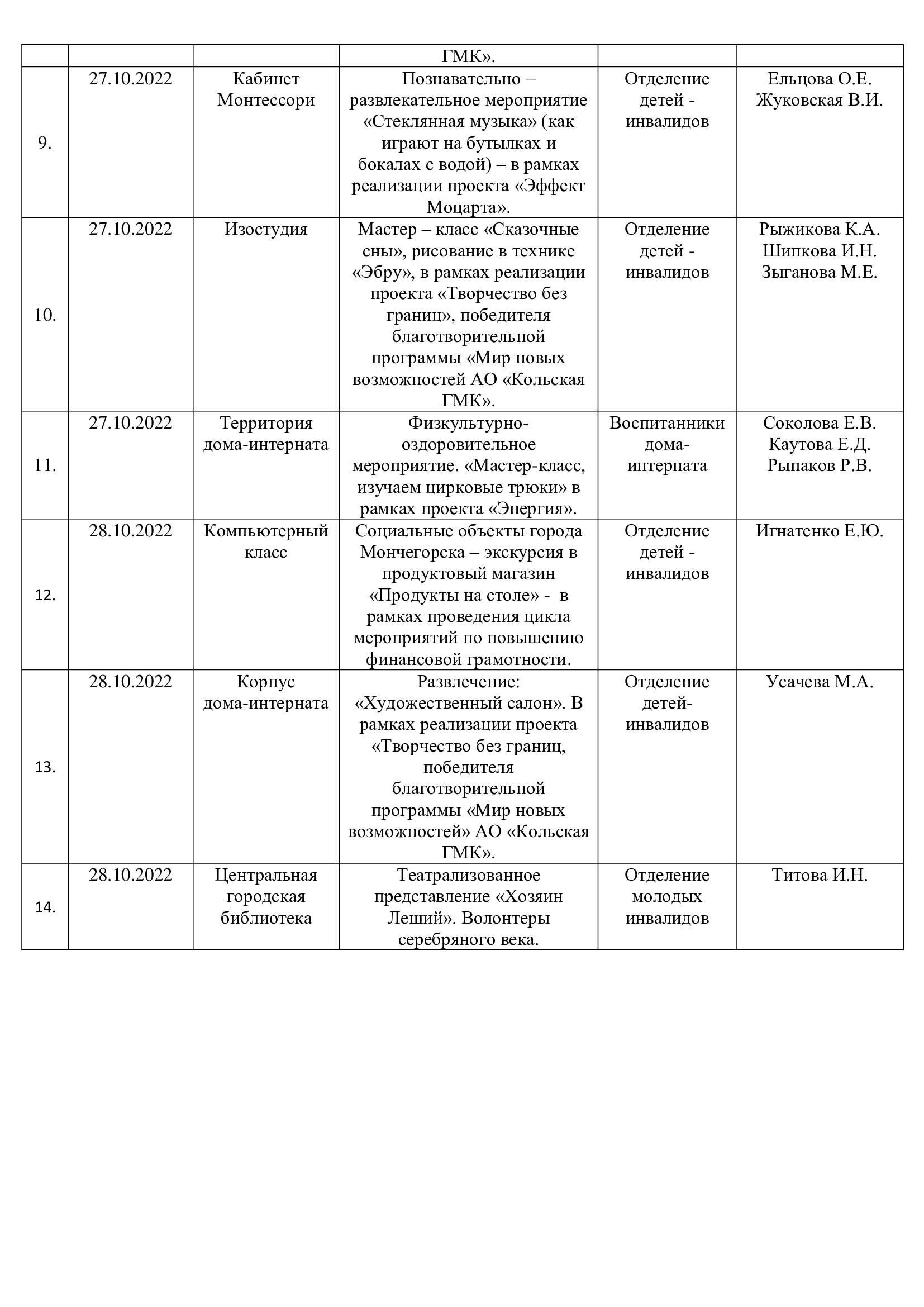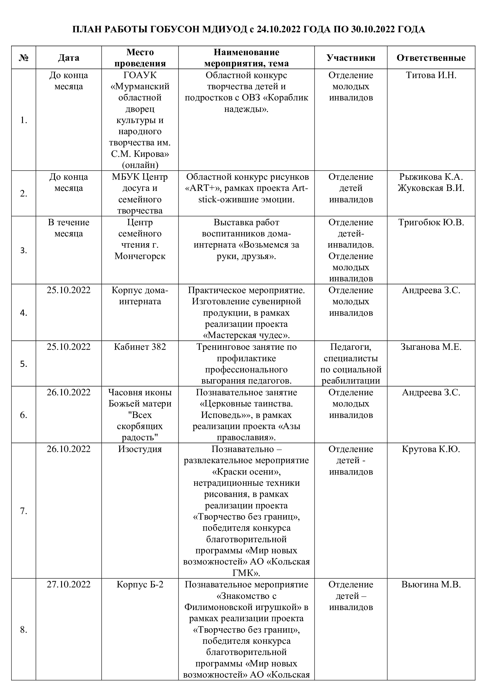 План работы ГОБУСОН МДИУОД с 24.10.2022 года по 30.10.2022 года