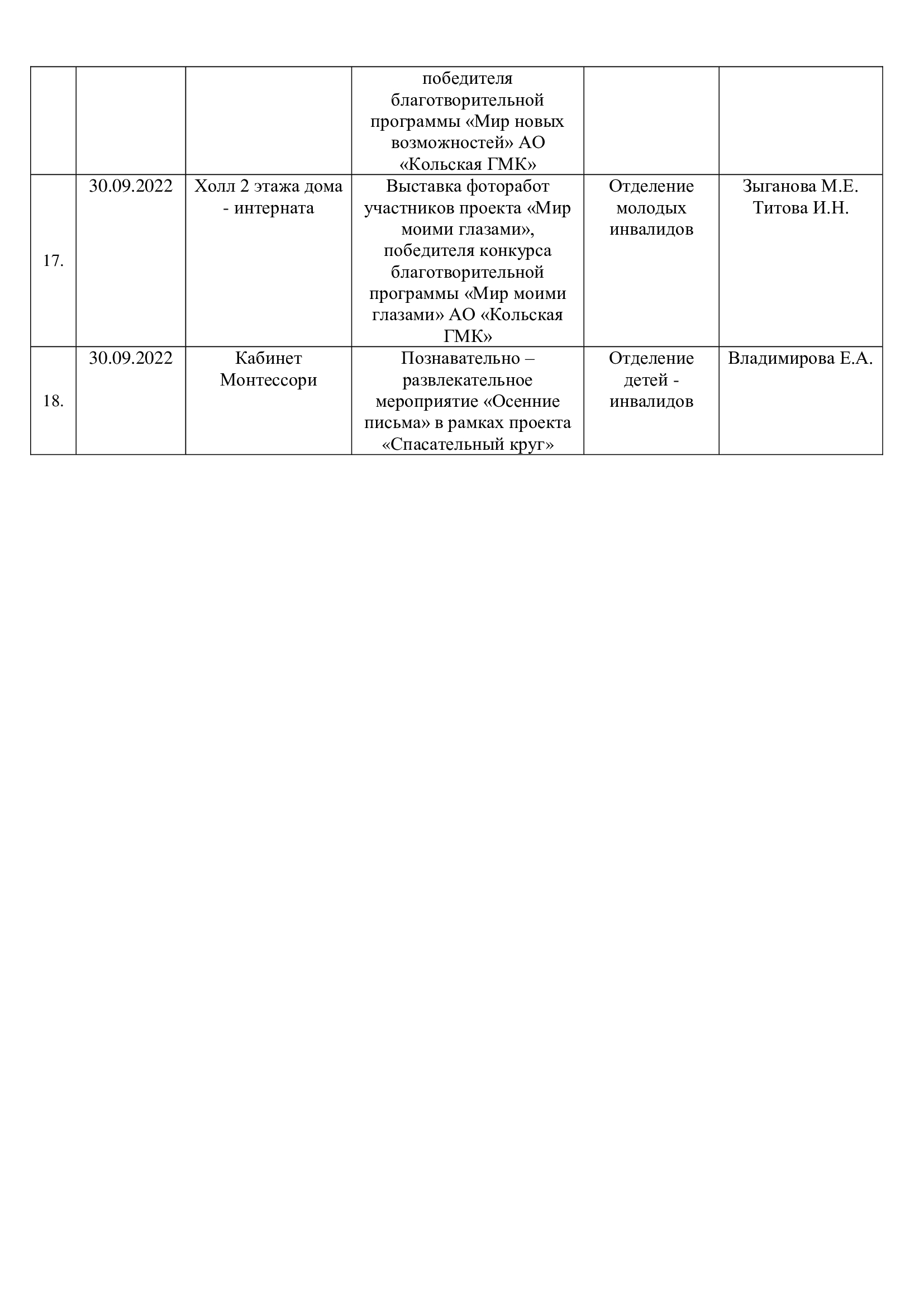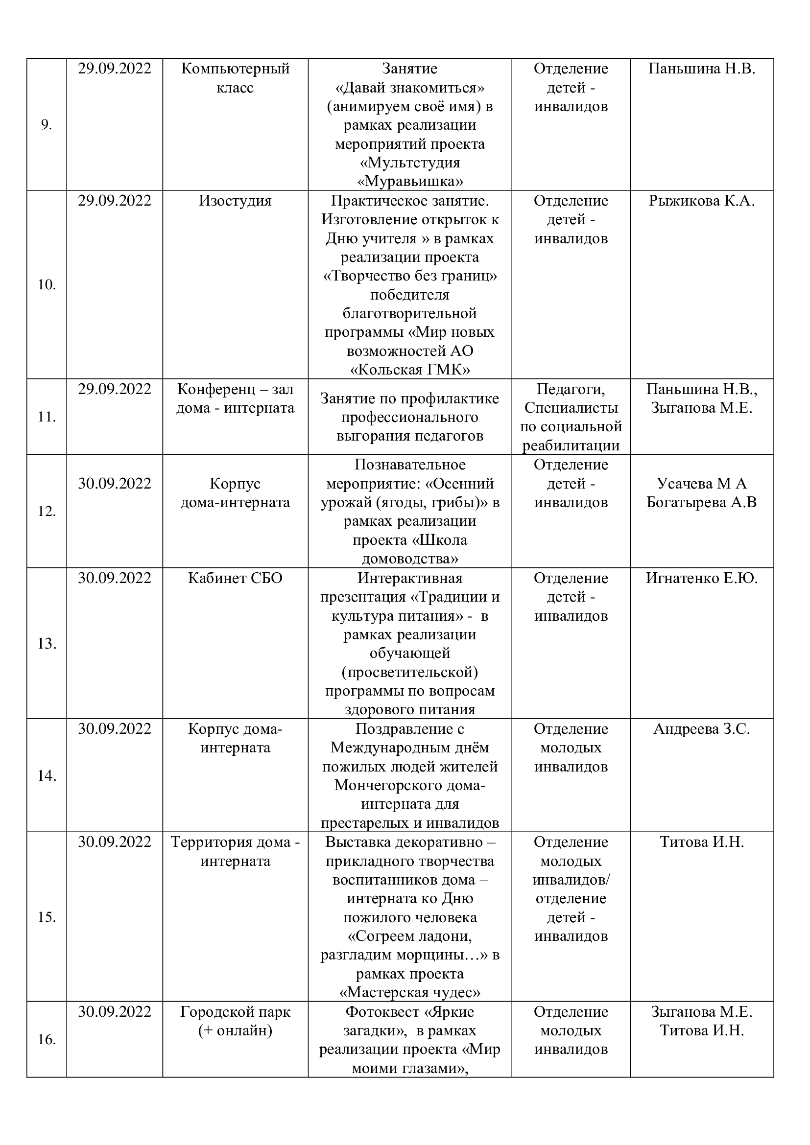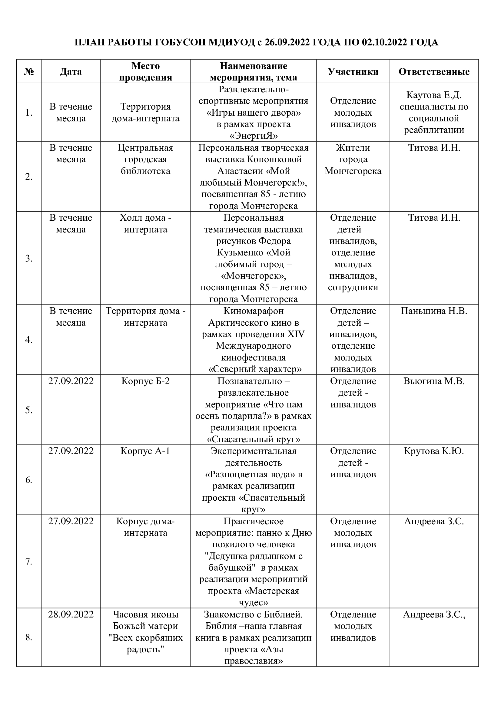 План работы ГОБУСОН МДИУОД с 26.09.2022 года по 02.10.2022 года
