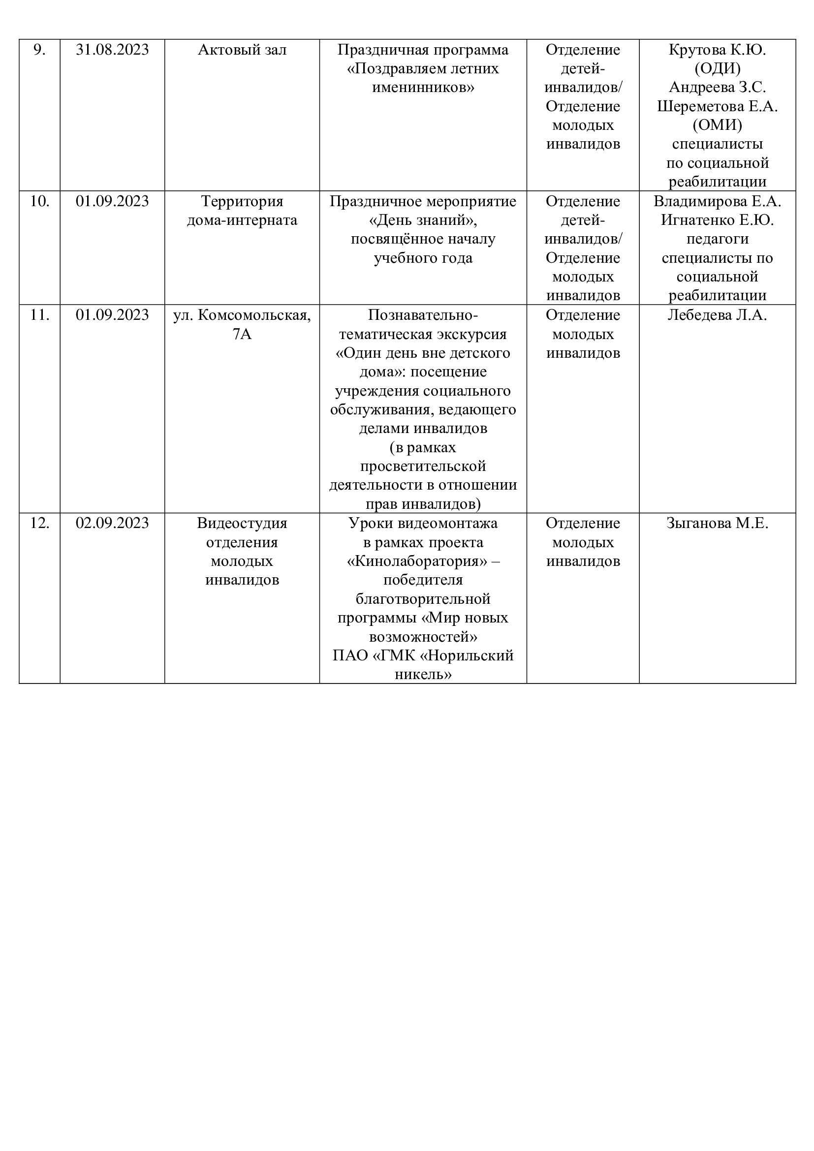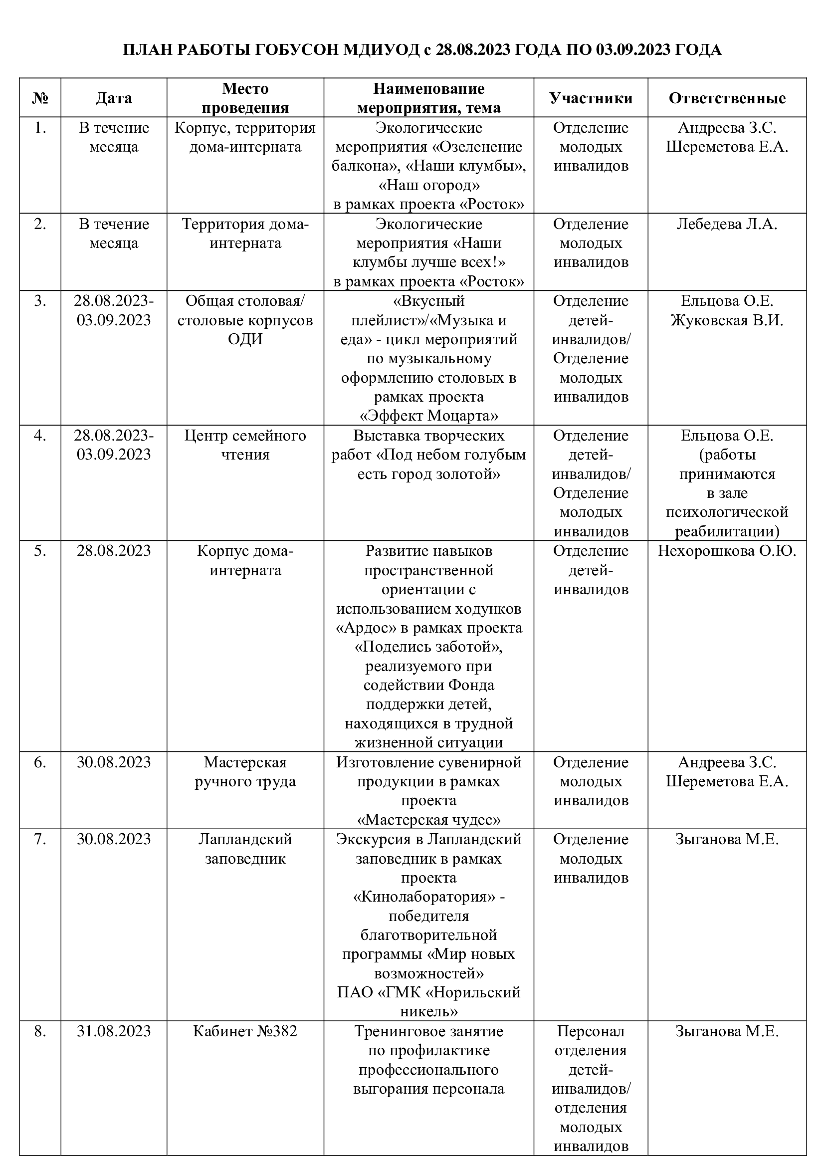 План работы ГОБУСОН МДИУОД с 28.08.2023 по 03.09.2023