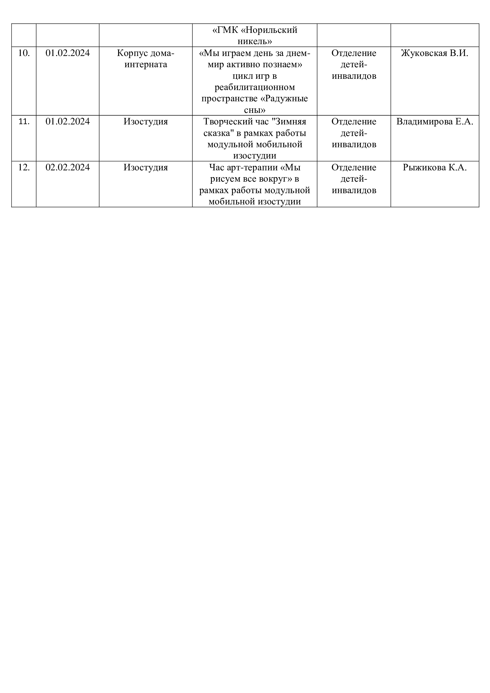 План работы ГОБУСОН МДИУОД с 29 января по 04 февраля 2024 года