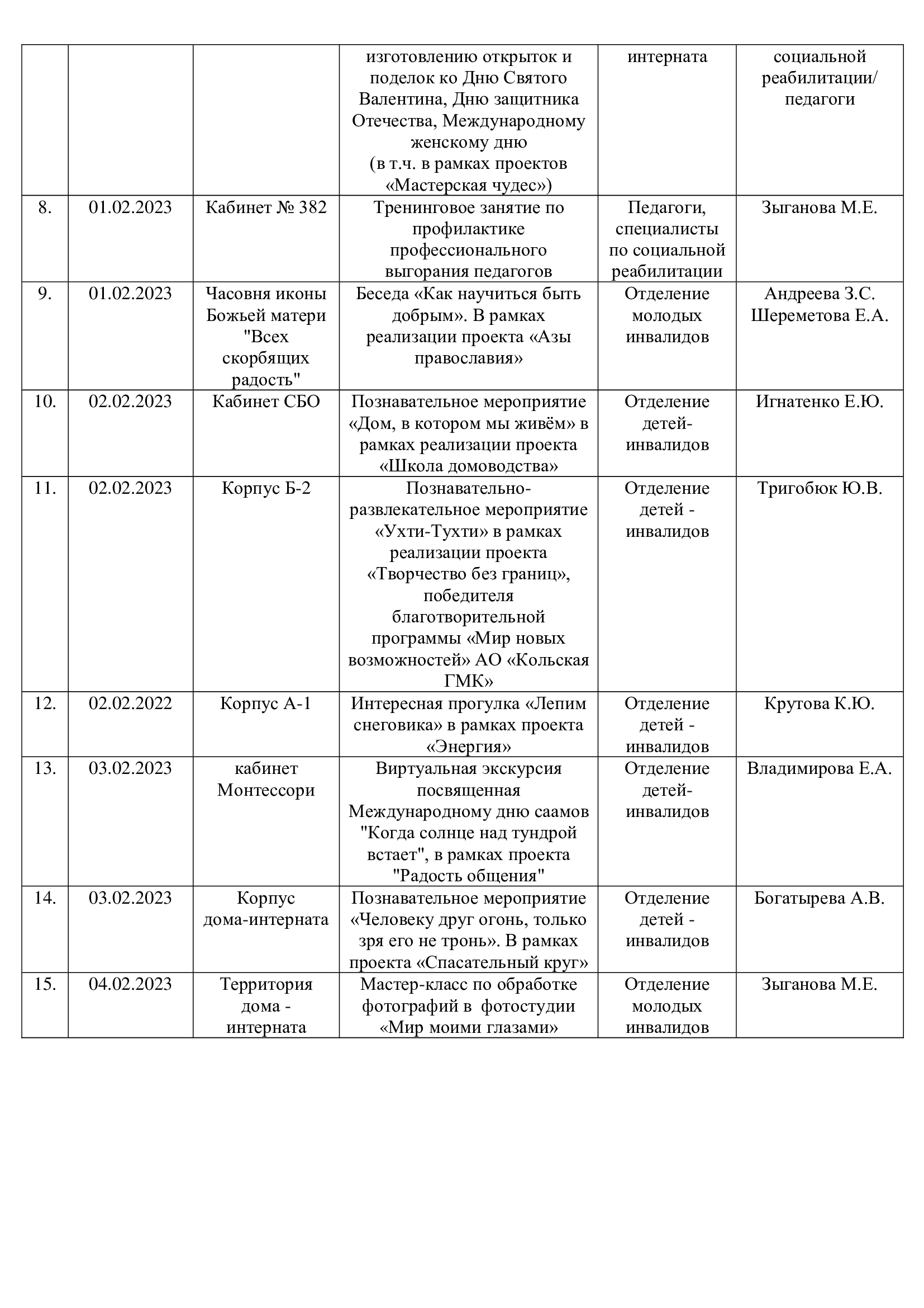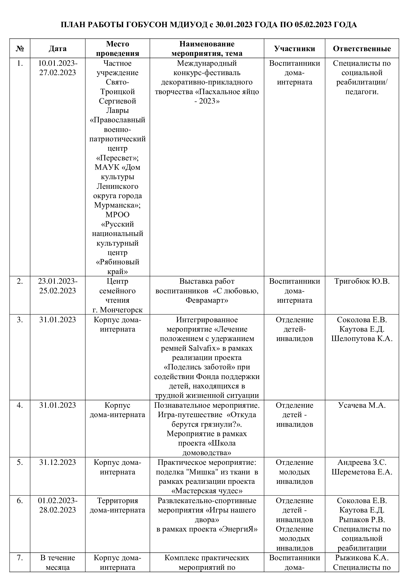 План работы ГОБУСОН МДИУОД с 30 января 2023 по 05 февраля 2023 года